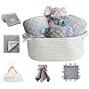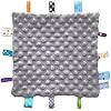 CREVENT Baby Welcome Gift Set Storage Basket with 2 Blankets+ 1 Security Blanket + 1 Taggie + 1 Gift Bag with Ribbon (Grey)