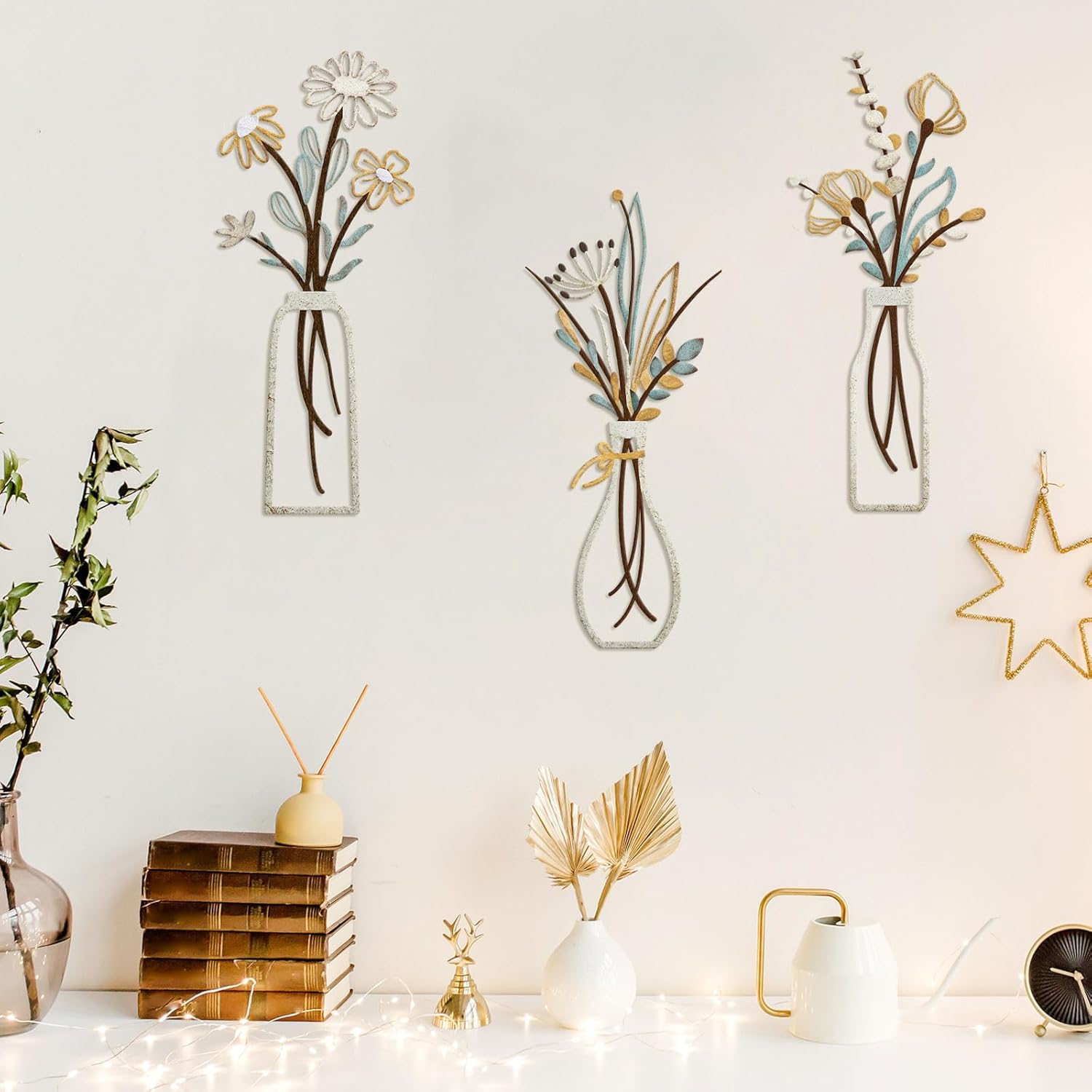 Trendy Boho Style: Embrace the modern boho trend with these chic metal vase flowers wall art that adds a unique artistic flair to your decor.Surprise your loved ones with this thoughtful and stylish wall art set, perfect for housewarming or special occasions.