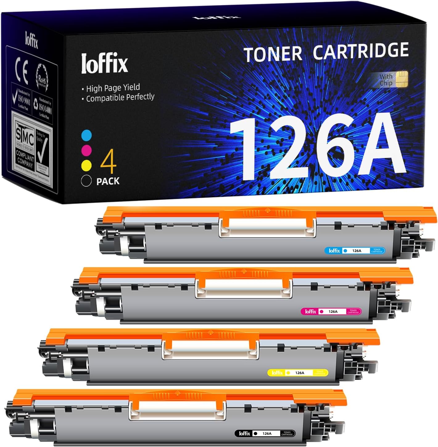 Ioffix 126A CE310A CE311A CE312A CE313A toner cartridge with chip Compatible with HP 126A toner cartridge.