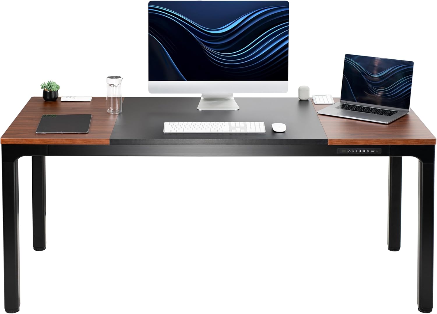 Spacious 3-Piece 71" Top - The 70.9” x 29.5” table provides a large surface for a variety of monitor and laptop setups along with important work materials, supplies, and decor. The 2-toned color creates an aesthetically pleasing design for the home and office.