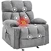Massage Rocker Recliner Chair with Heat and Vibration Ergonomic Rocking Lounge Chair for Living Room Comfy Overstuffed Recliner with 4 Side Pockets,2 Cup Holders, USB Charge Port, Grey