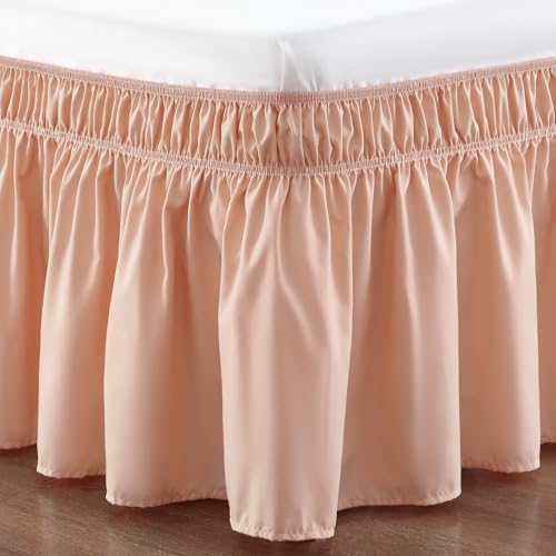 RIMELA Bed Skirt Queen Size 15 Inch Drop, Wrap Around Elastic Bedskirt Solid Microfiber Luxury Hotel Quality Fabric, Easy to Install Machine Washable Wrinkle & Fade Resistant, Flesh Pink