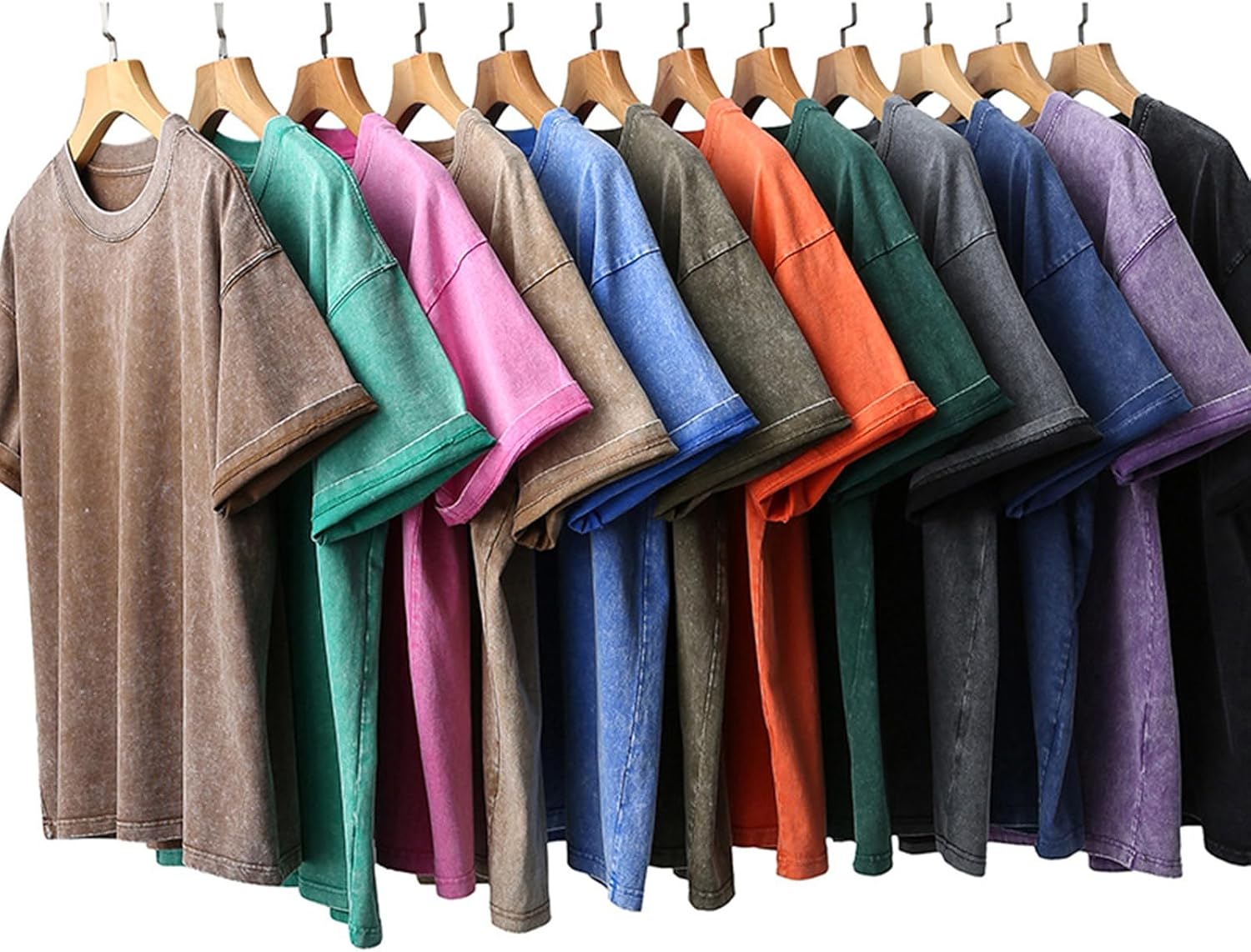 Men's Oversized Cotton T-Shirts Loose Fit Vintage Washed Tee Unisex Short Sleeve Casual Shirts Tops