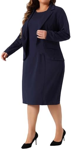 Agnes Orinda Plus Size Dress Suits for Women Two Piece Outfits Blazers Jacket and Sleeveless Dress Business Casual Suit Sets