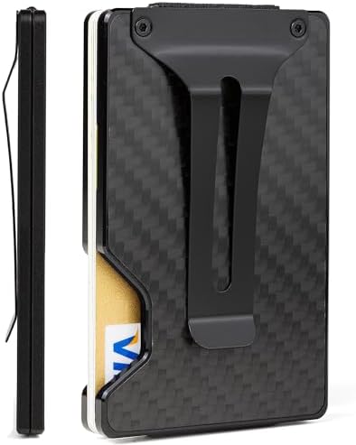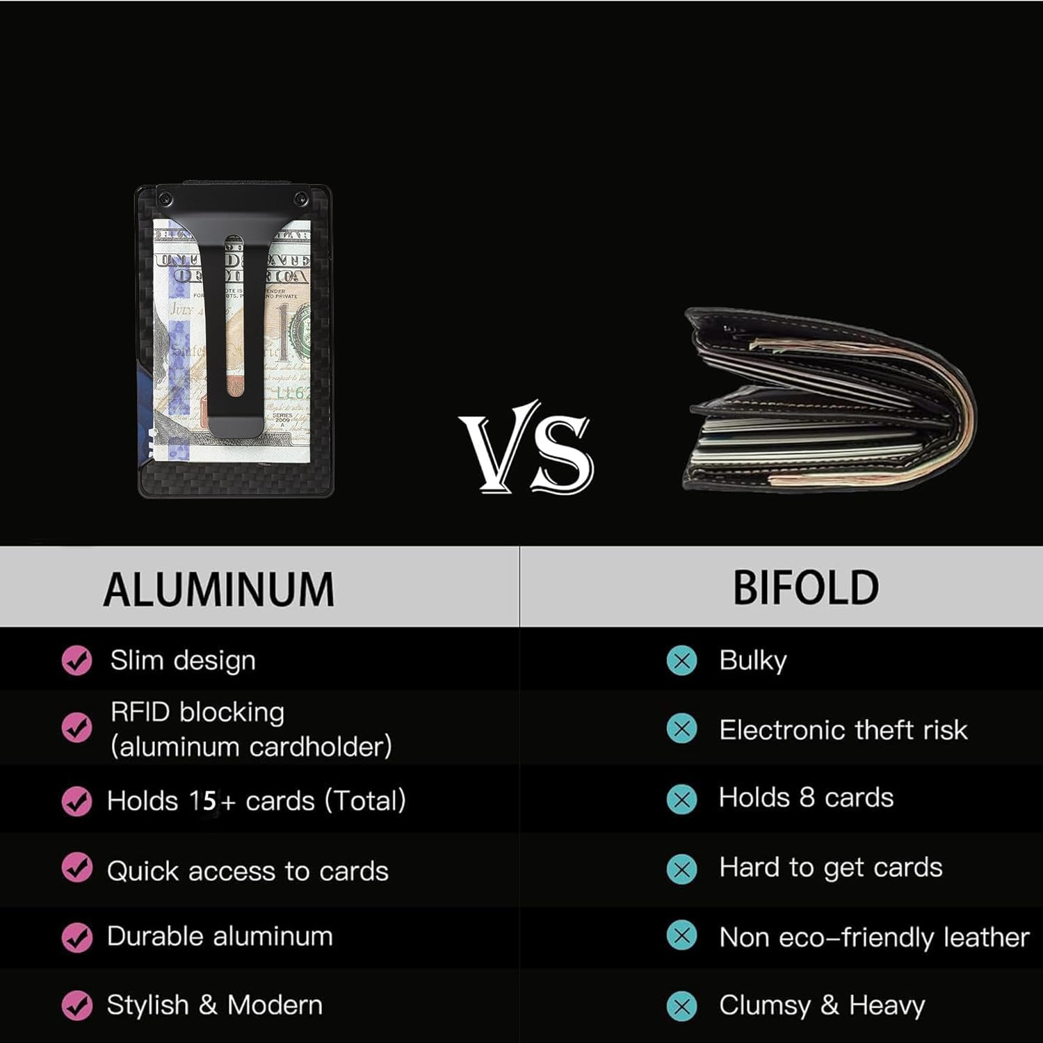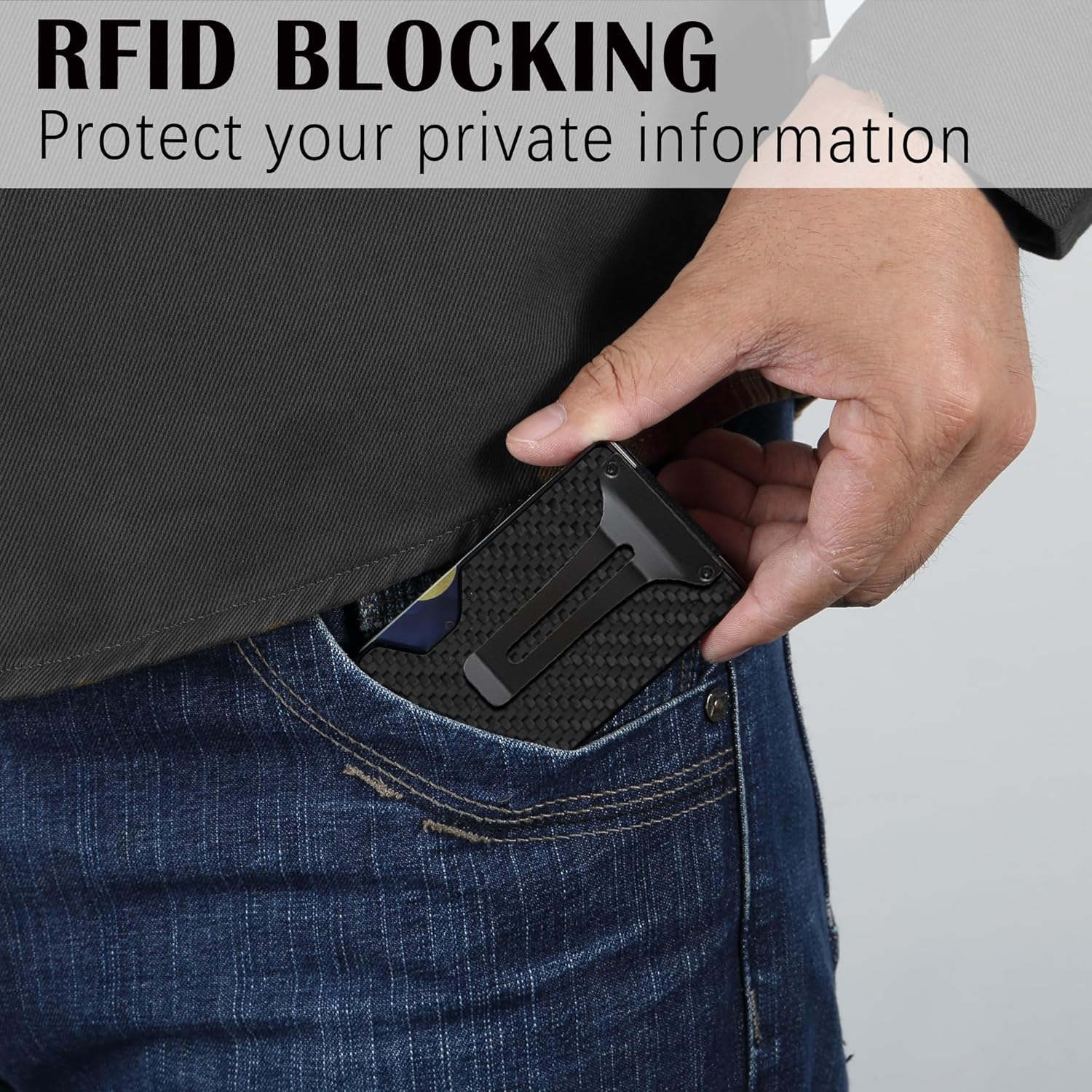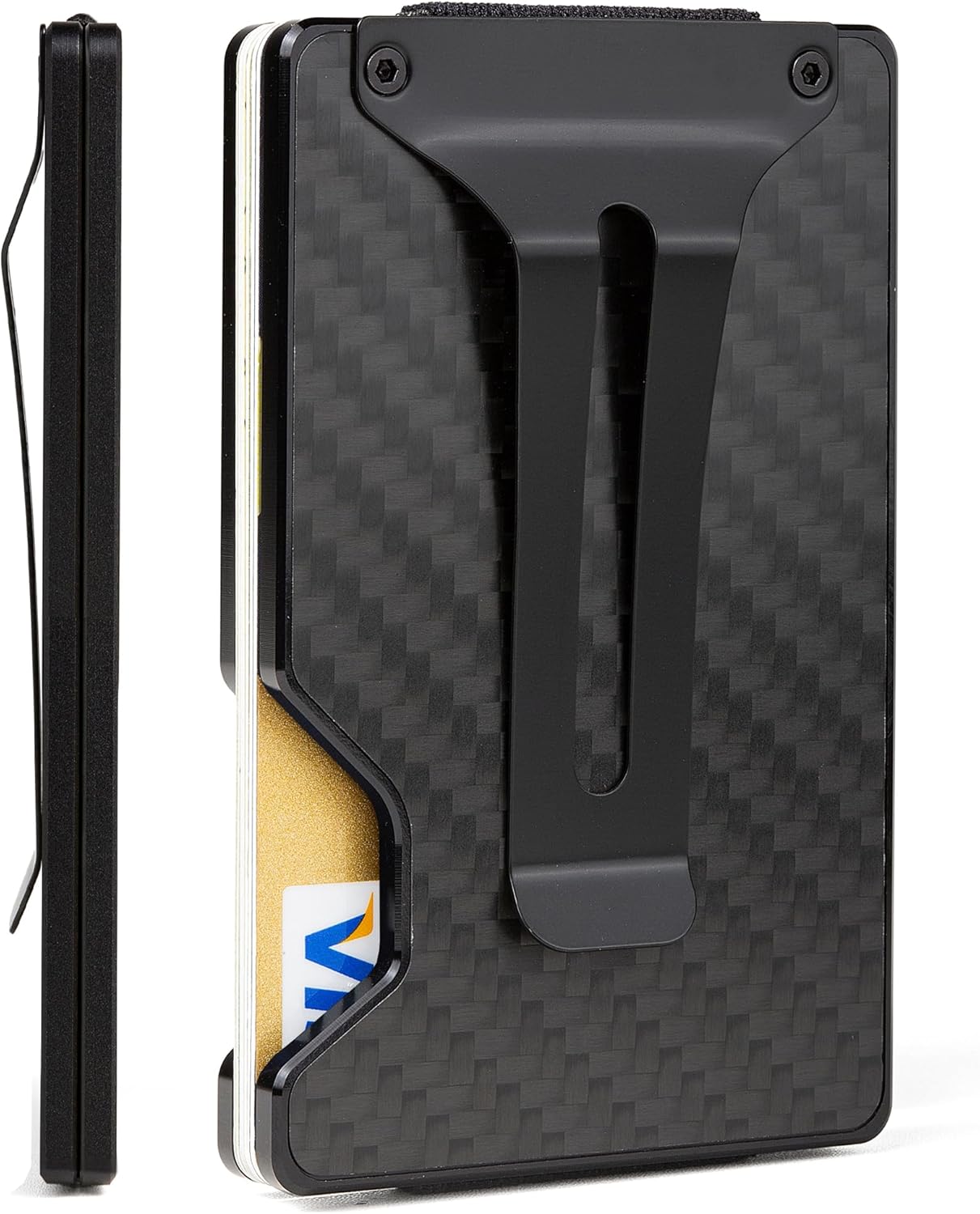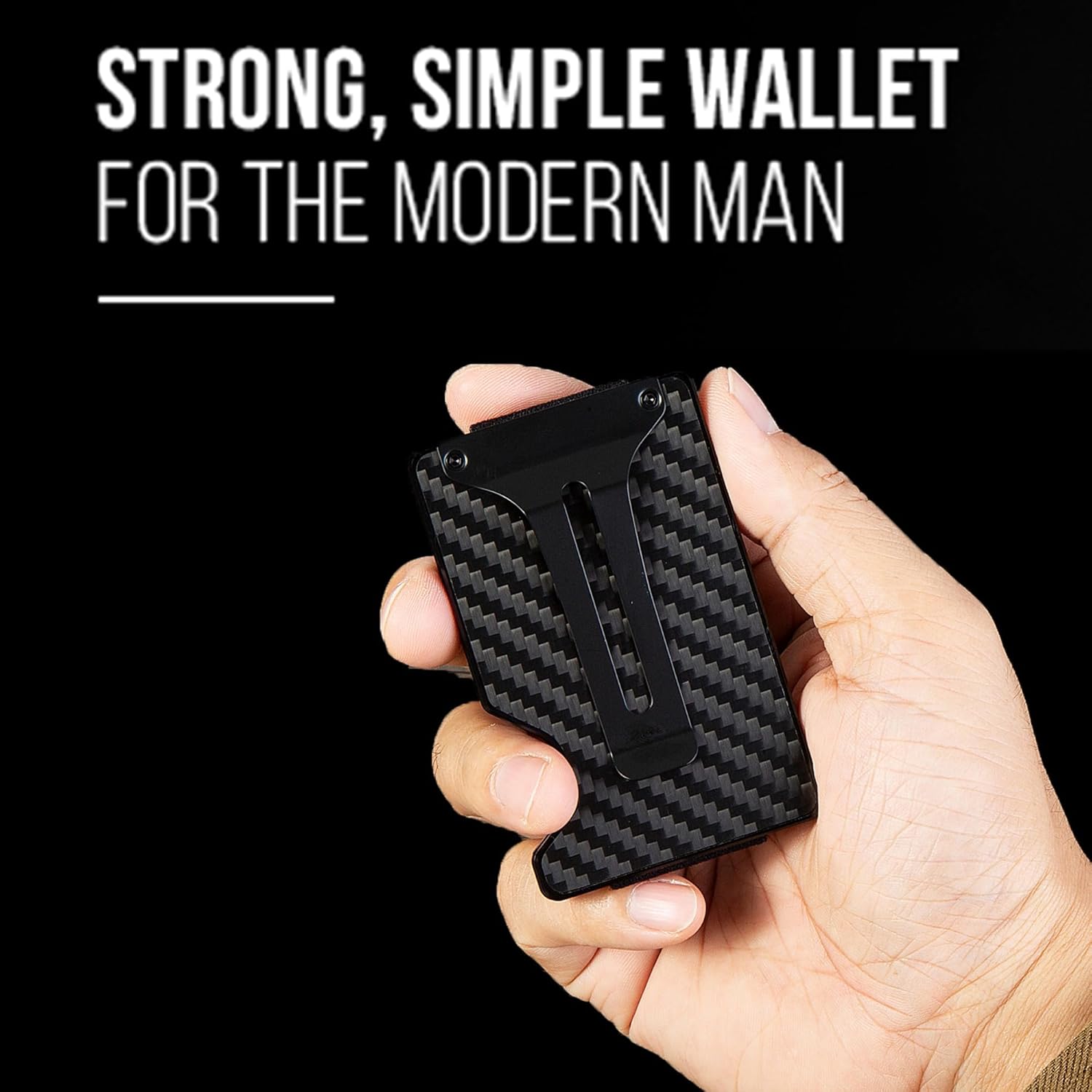 Wallet for Men, Slim Minimalist Carbon Fiber Wallet with Metal Money Clip/Cash Strap, RFID Blocking Aluminum Card Holder-Carbon Fiber