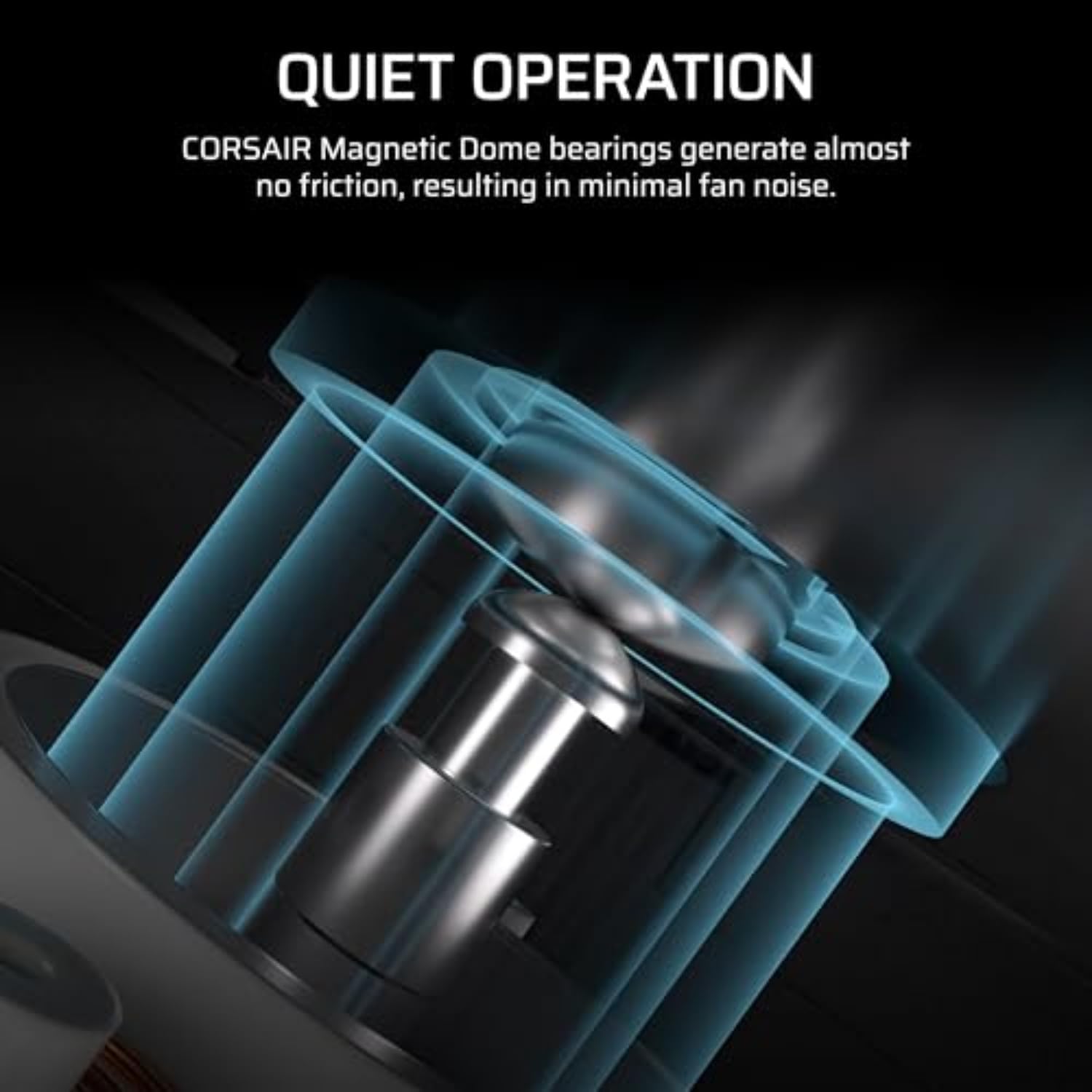 Tecnología CORSAIR AirGuide: Las aspas antivórtice dirigen el flujo de aire hacia sus componentes más calientes para un enfriamiento concentrado, empujando el aire en la dirección que necesita cuando se monta en un radiador o disipador de calor.