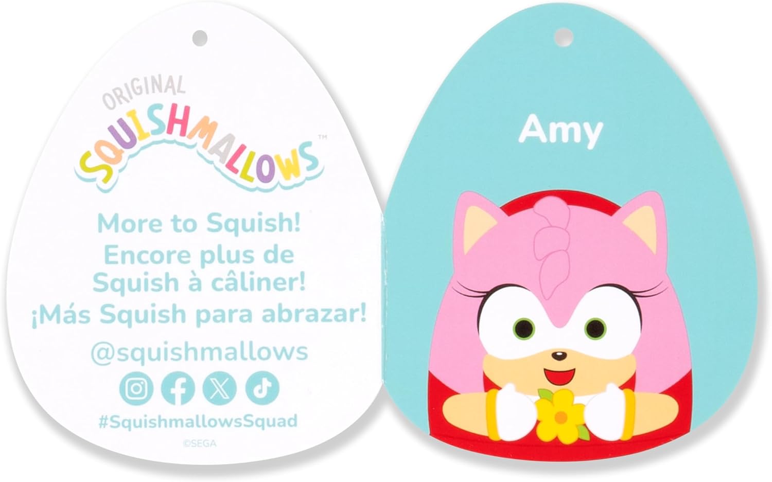 Celebrate the pop culture sensation of "Sonic the Hedgehog"’ with this 14in Amy Rose Holding Flowers Squishmallows plush. Squishmallows are made with ultrasoft, high-quality materials and make the perfect companion for long flights, comfy nights—even Sonic play-a-thons! Look out for other “Sonic the Hedgehog” Squishmallows—including Tails and Shadow—and race home with your new besties today. Only by Original Squishmallows and officially licensed by SEGA. Join the Squad!