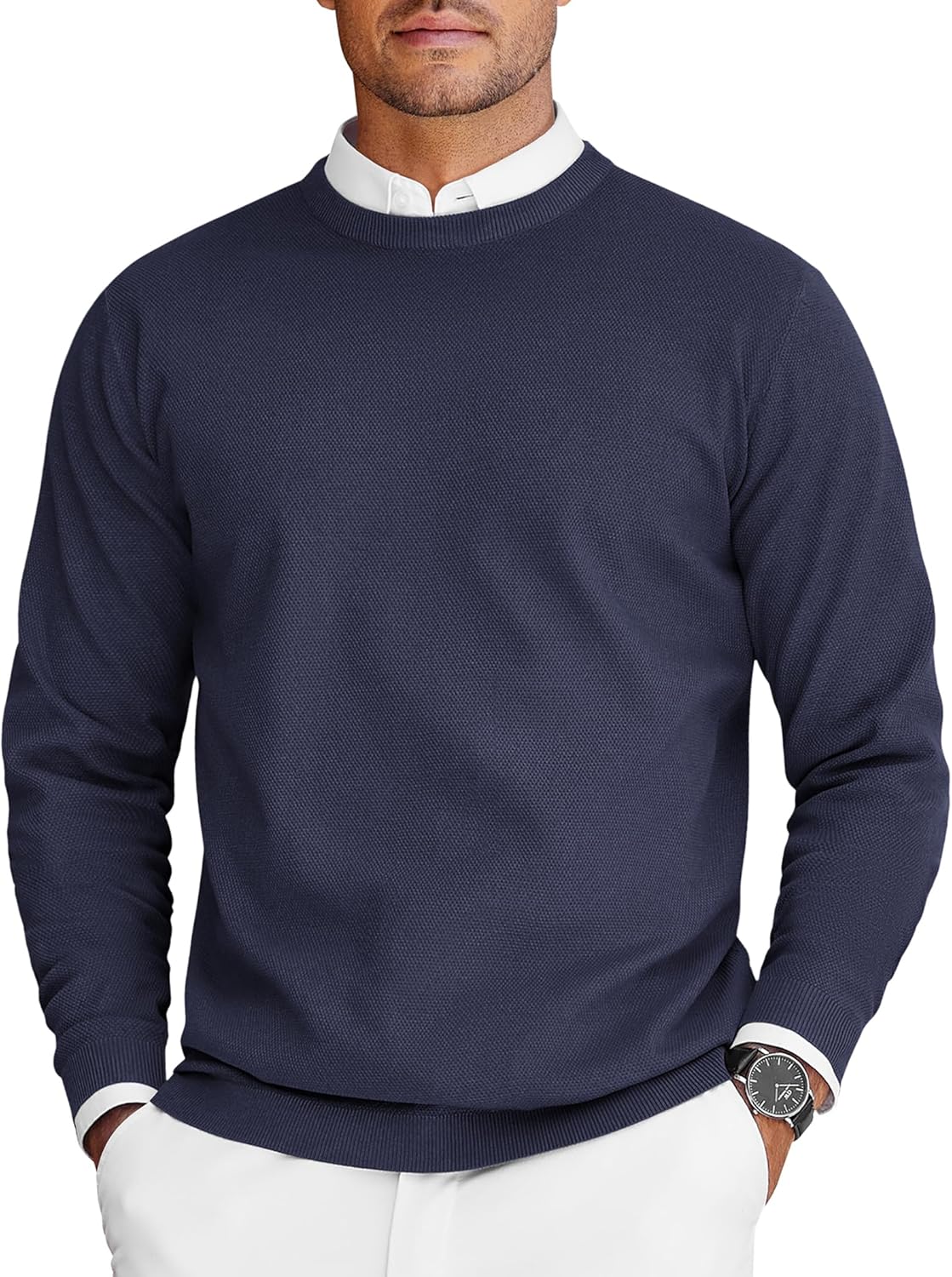 COOFANDY Mens Crew Neck Sweaters Long Sleeve Lightweight Knit Dress Pullover Sweaters