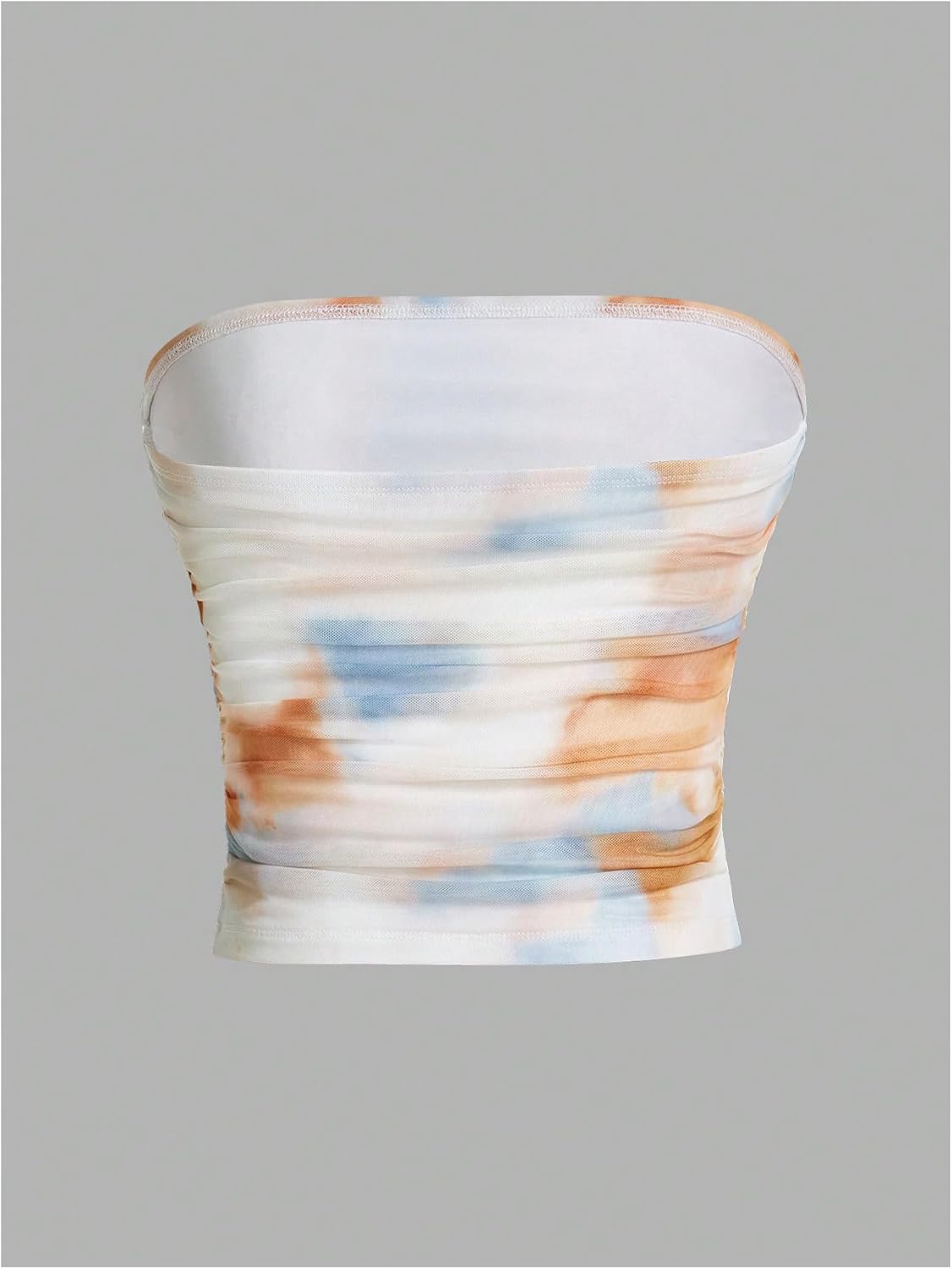 GORGLITTER Women's Strapless Bandeau Tube Tops Cute Summer Mesh Backless Ruched Going Out Crop Tops Cami 2025 Trendy