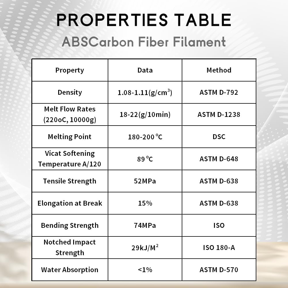 【Menos o Ningún Recurvado】El ABS tradicional es difícil de imprimir y propenso al recurvado. Este ABS CF mejorado minimiza significativamente el problema común de recurvado durante el proceso de impresión y mejora la suavidad de la superficie, resultando en menos líneas de capa visibles.