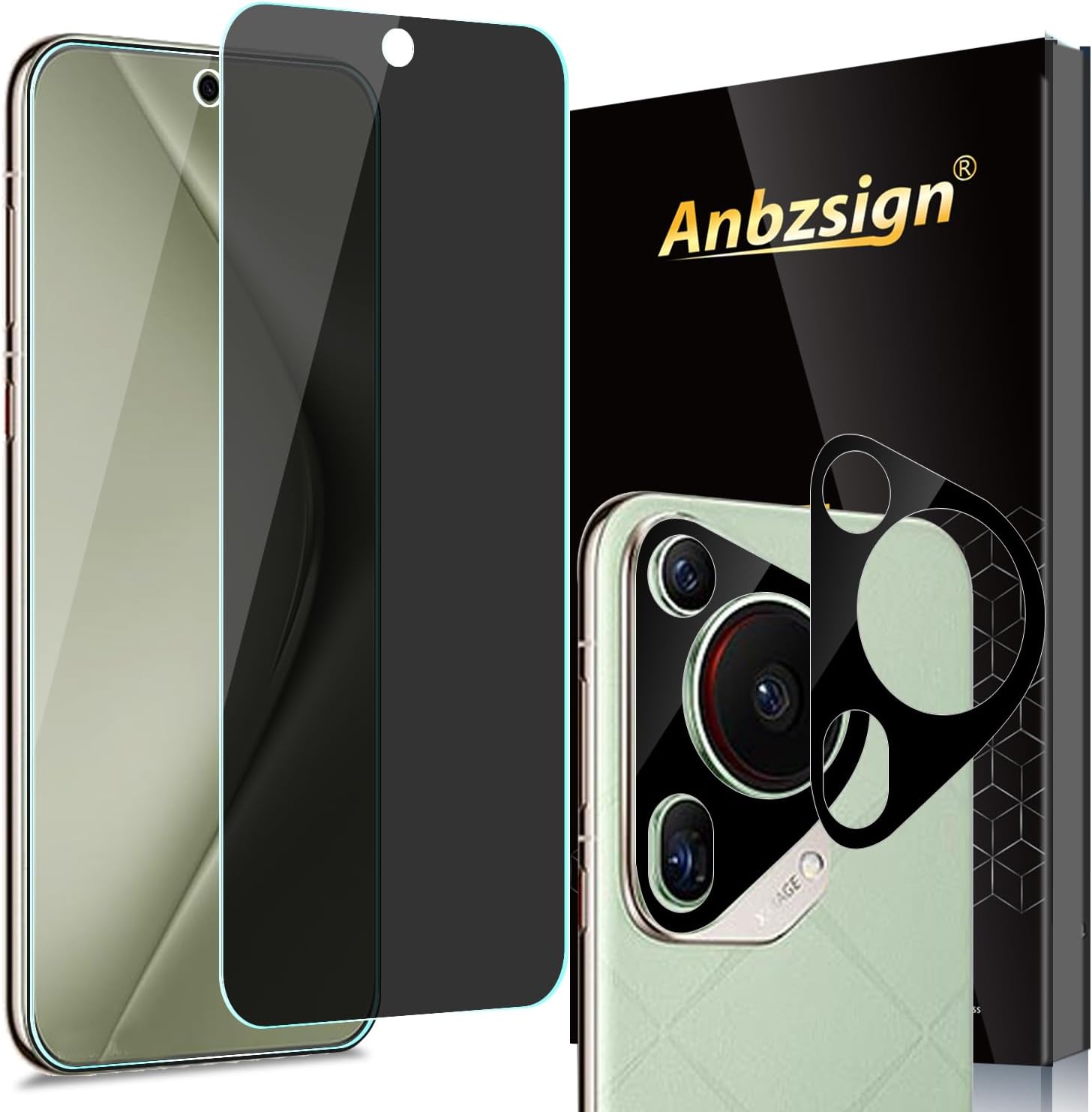 Anbzsign [2+2 Pack] for Huawei Pura 70 Ultra Privacy Tempered Glass Screen Protector and Camera Lens Protector, Anti-Spy 9H Hardness Case Friendly Film for Huawei Pura 70 Ultra