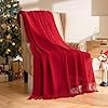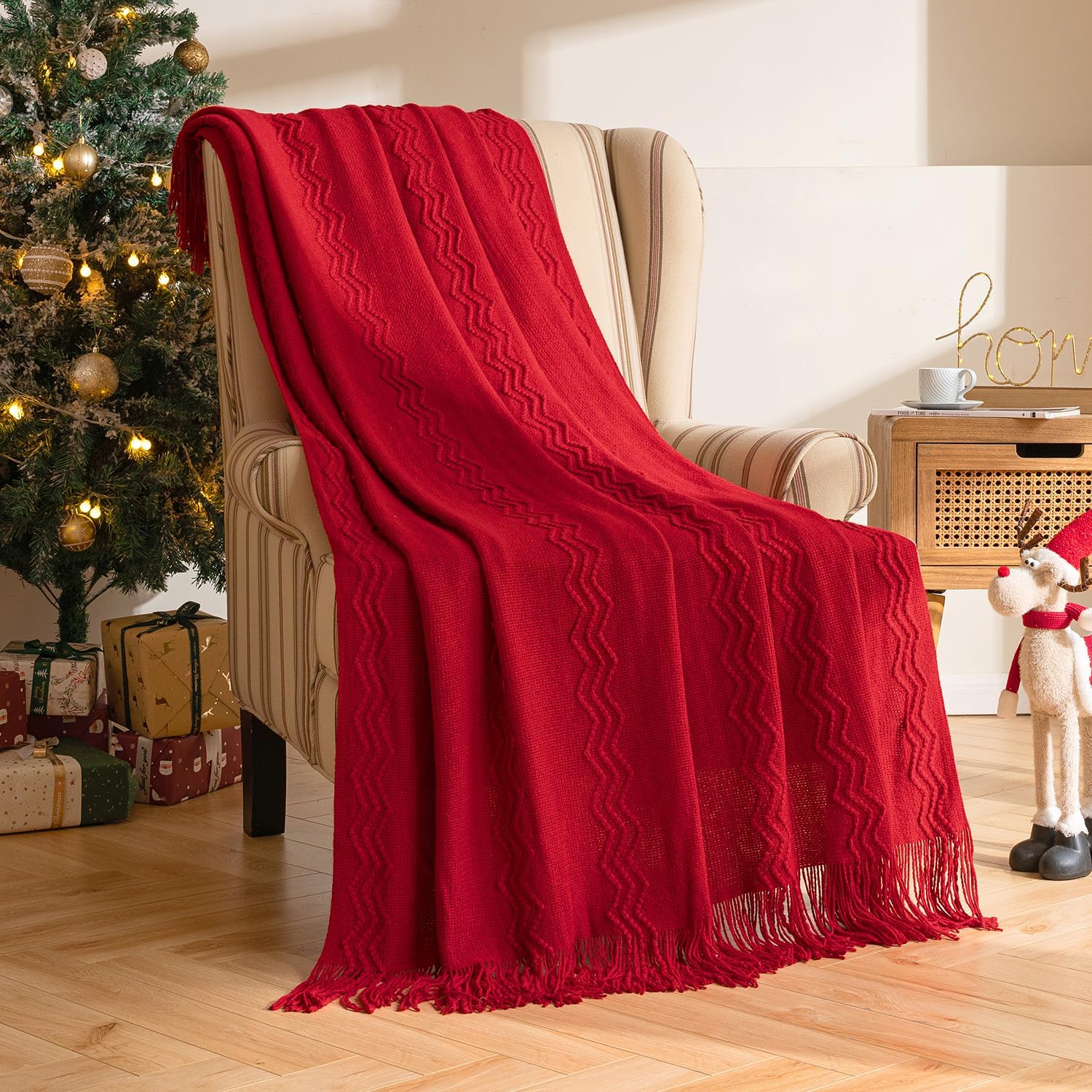 MIULEE Christmas Red Knitted Throw Blanket for Couch Boho Textured Cozy Woven Blanket with Tassels for Sofa Chair Bed Living Room Acrylic Wave Pattern 50"x60"