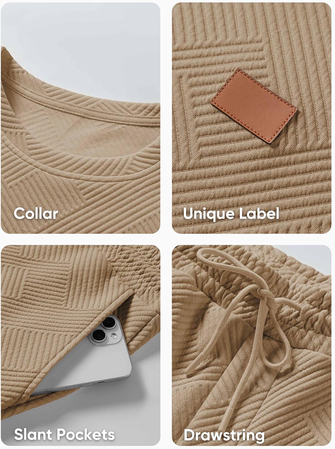 JMIERR Men's 2 Piece Outfits Knit Jacquard Pullover Sweatshirt Tracksuit & Joggers Sweatpants Sweatsuit Sets with Pockets