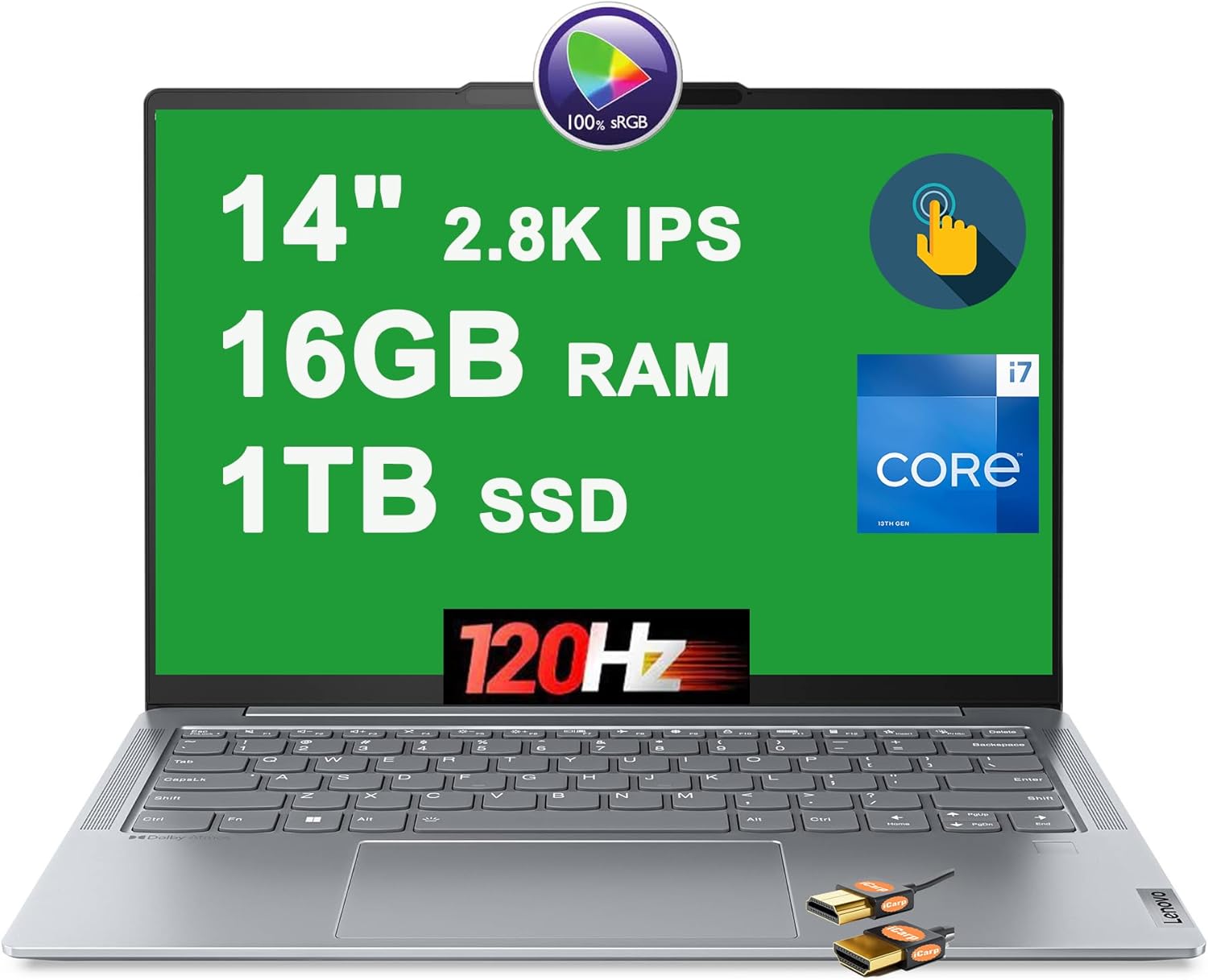 Lenovo Slim 7 Business Laptop 14" 2.8K Touch 120Hz 400nits 100% sRGB Intel 12-core i7-1360P 16GB RAM 1TB SSD Backlit Fingerprint Thunderbolt4 FHD Camera Rapid Charge Win11Pro Grey + HDMI Cable