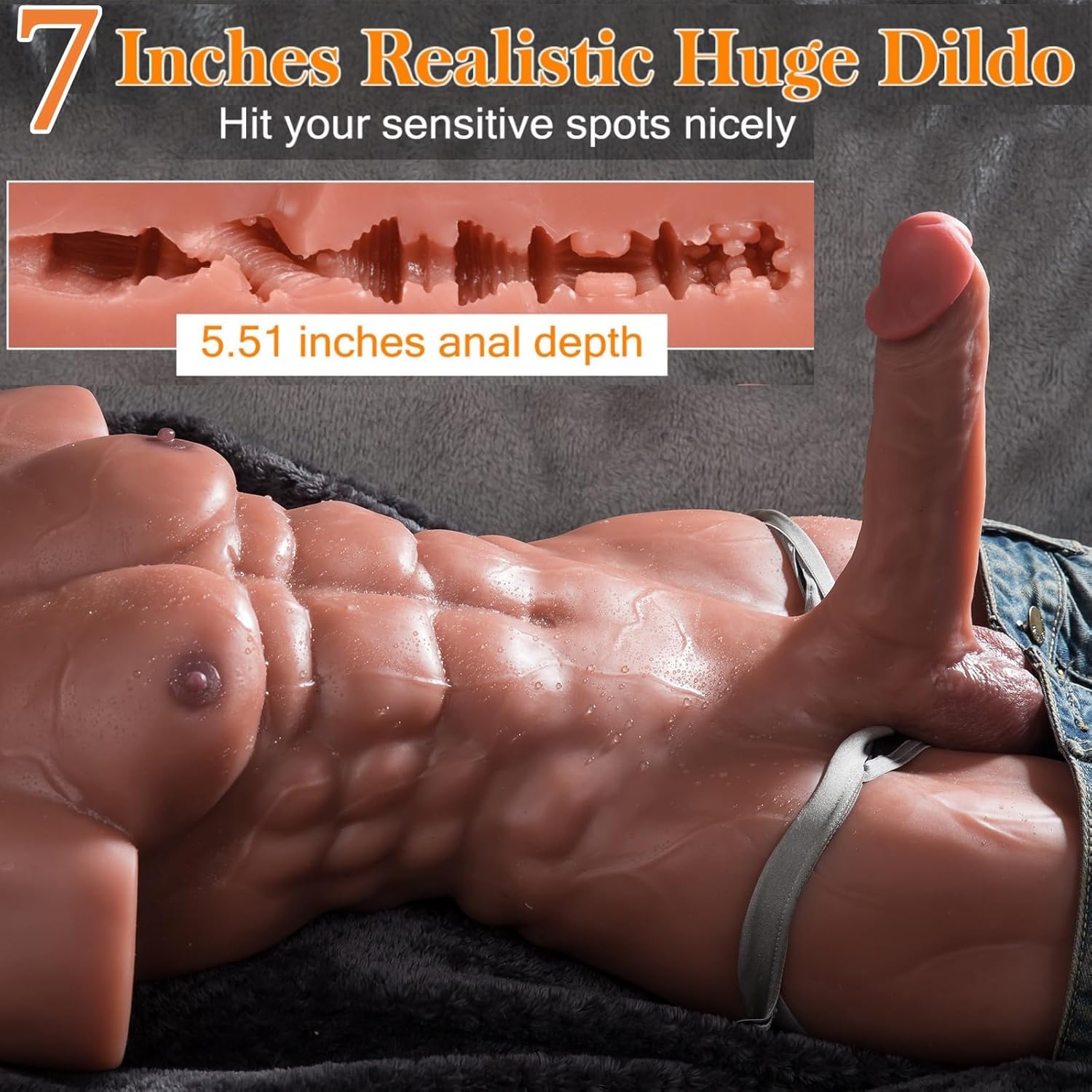 Life-Sized Muscular Male Torso Sex Doll: The male masturbator sex toy has bulging pectoral muscles, sexy dark brown nipples, undulating sculpted abdominal muscles, realistic dildo, perky buttocks, and firm thigh muscles, which will make ladies and gay swoon over. The 26 LB weight can provide stable support for your wildest riding, perfect for female riding, couples flirting, gay masturbation and threesome