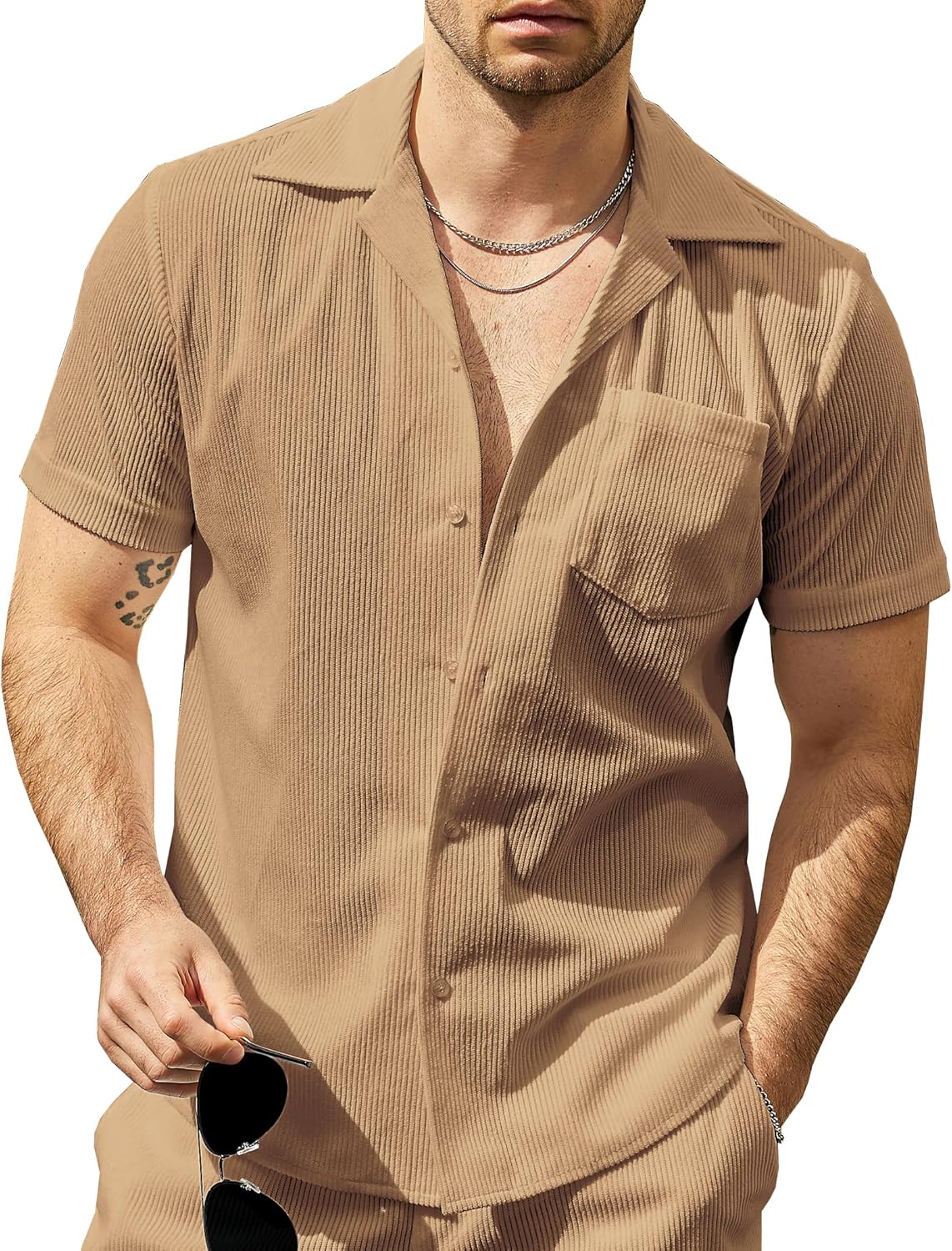 VATPAVE Mens Casual Cuban Shirts Short Sleeve Button Down Shirts Summer Beach Shirts with Pocket
