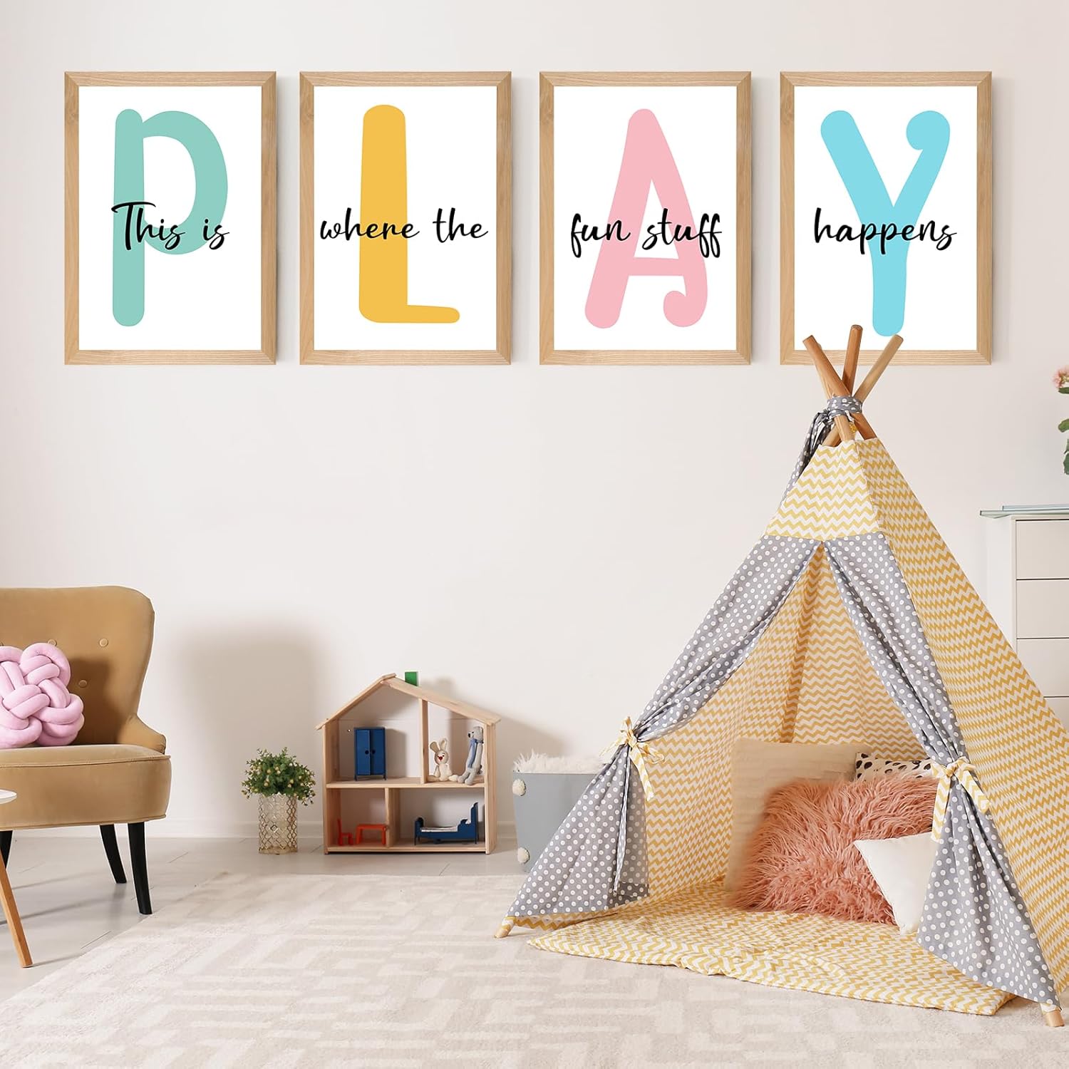 【PERFECT DESIGN】The PALY This Is Where The Fun Stuff Kids Playroom artwork wall decor for kids bedroom contains 4 framed wall art poster. perfect as your wall art,it will be an eye-catching decorations in your drab room.