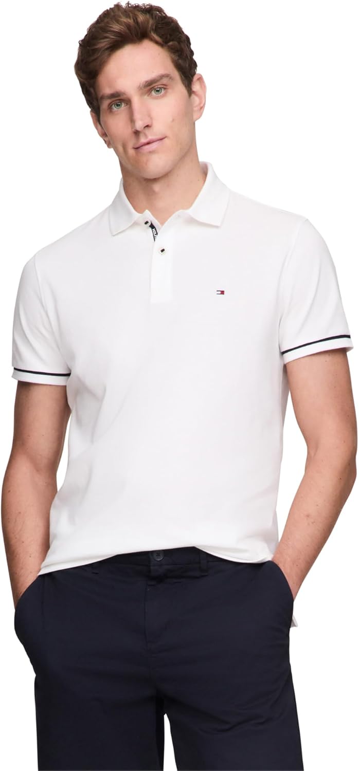 Introducing Tommy Hilfiger's iconic polo shirts for men, crafted from premium organic cotton and stretch fibers for optimal shape retention and comfort. Renowned for its timeless cut, sharp aesthetic, and comfortable fit, this best-selling polo remains a staple year after year. Tommy Hilfiger's polo shirts boast a blend of premium cotton and stretch fibers, making them the go-to choice for men seeking both style and functionality. Perfect for golfing with its natural breathability and stretch, this polo offers unparalleled comfort on and off the course. Designed with a regular fit that's slightly slimmer through the chest and shoulders, this button-down polo exudes a casual yet polished look. Pair it effortlessly with your favorite Tommy Hilfiger shorts, pants, jeans, or jackets for versatile styling options suitable for any occasion, whether it's a casual outing or a formal event. Ideal for daily wear, work, school, events, vacation, or sports like golf and tennis, this men's polo is a wardrobe essential. Treat yourself or surprise a loved one with this timeless piece, perfect for fathers, brothers, boyfriends, husbands, sons, or friends. Elevate your everyday style with the unbeatable quality and sophistication of Tommy Hilfiger's men's polo shirts.