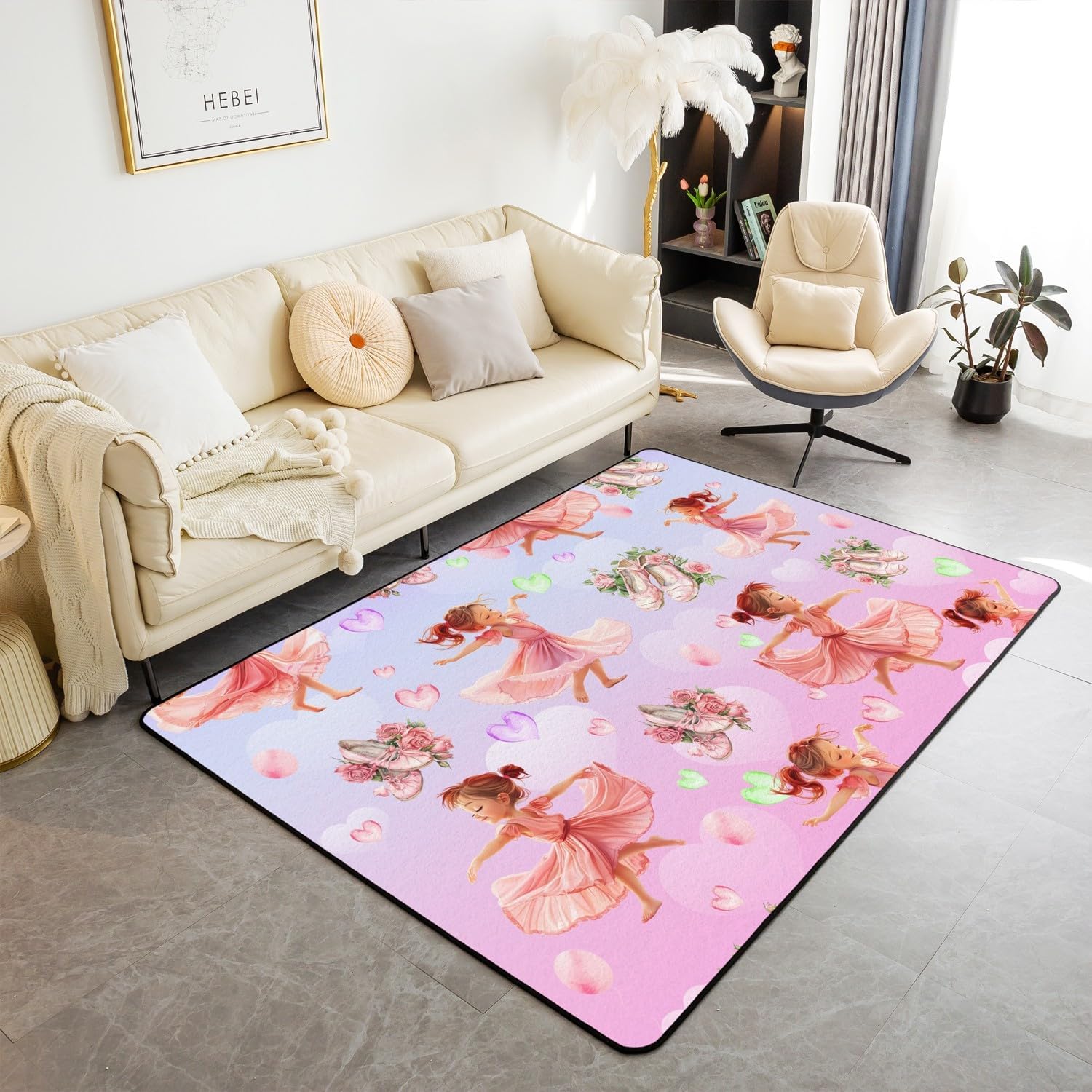 Ballet Girl Area Rug 5x7 Floral Ballet Shoes Rug for Bedroom Artistic Gymnastics Dancer Carpet Non Slip Pink Purple Ombre Floor Mat Decorative Accent Rug Non Shedding