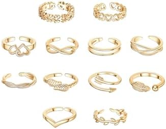 12PCS Toe Rings for Women 14K Gold/Silver Plated Adjustable Toe Ring Set Open Heart Arrow Infinity Rings Beach Foot Jewelry for Summer