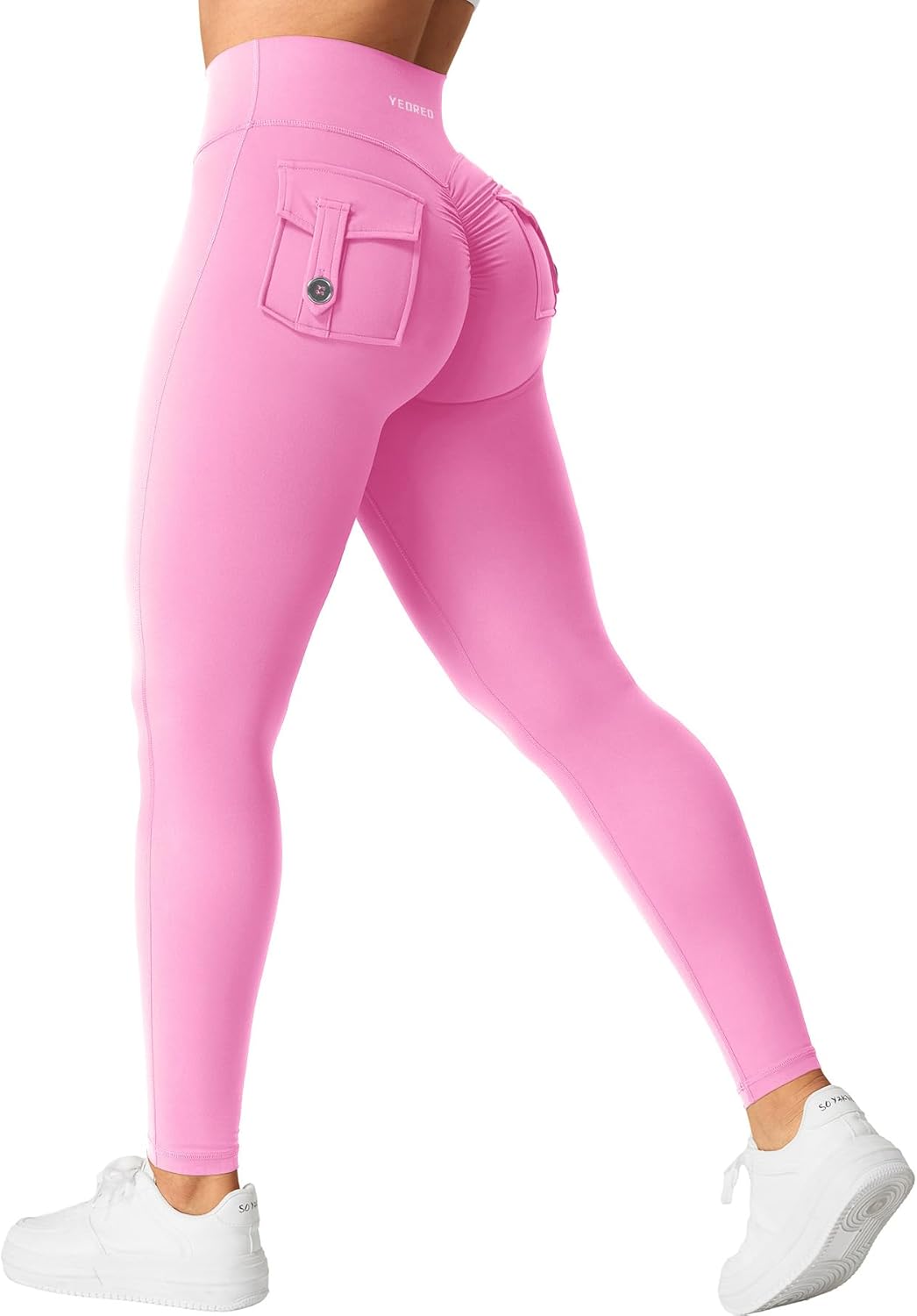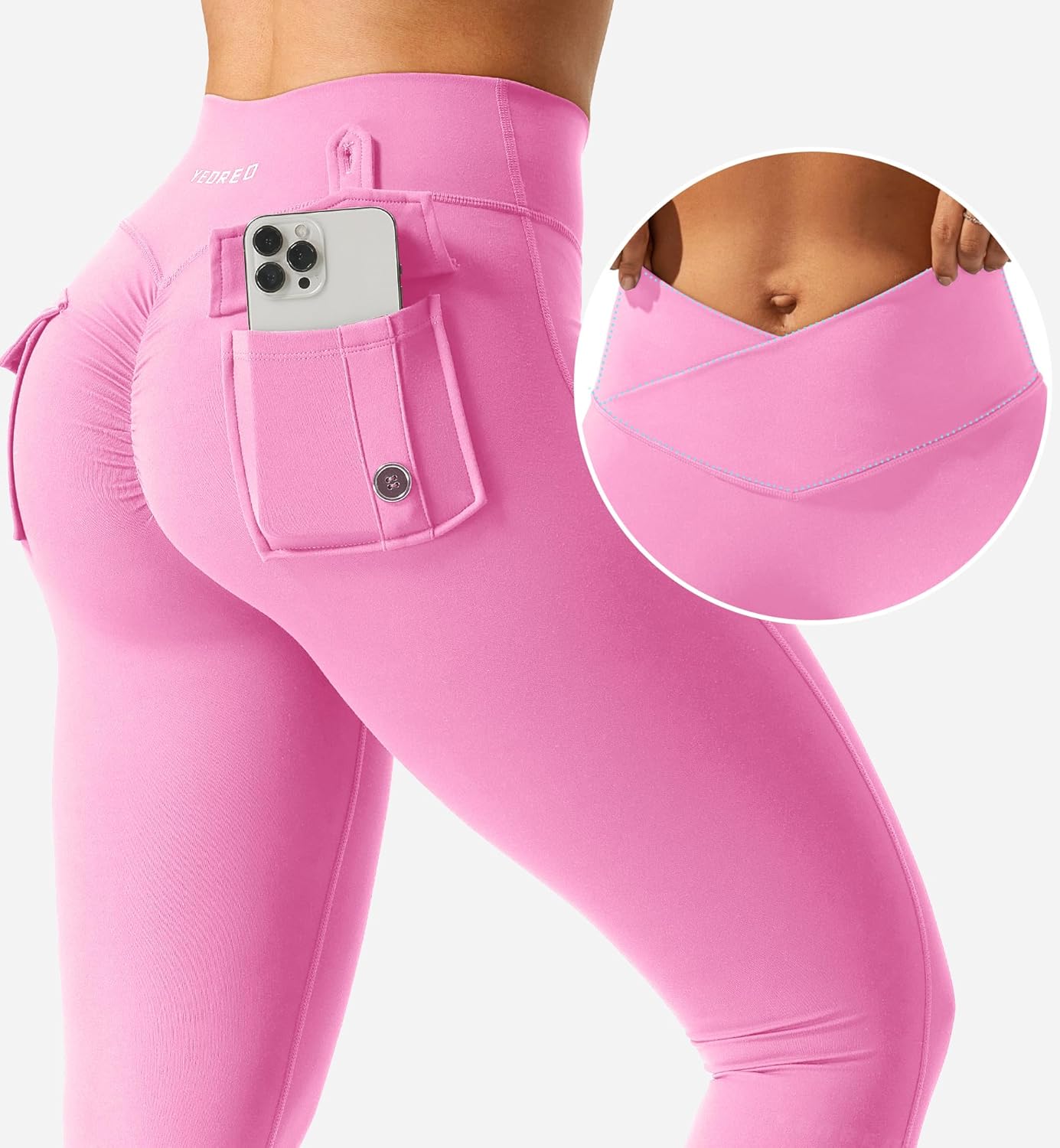 YEOREO CoreFlex Leggings with Pockets for Women Charm Scrunch Workout Leggings V Cross Waist Butt Lifting Gym Yoga Pants