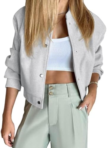 Tankaneo Womens Cropped Bomber Jacket Wool Blend Varsity Short Pea Coats Long Sleeve Button Down Winter Casual Outerwear