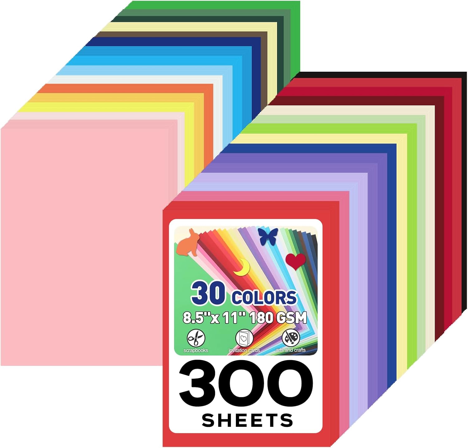 MAXECHO 8.5" X 11" Colored Cardstock Bulk 300 Sheets 30 Assorted Colors Construction Paper Card Stock Printer Paper for DIY Crafts, Kids School Supplies, Cricut, 180 GSM