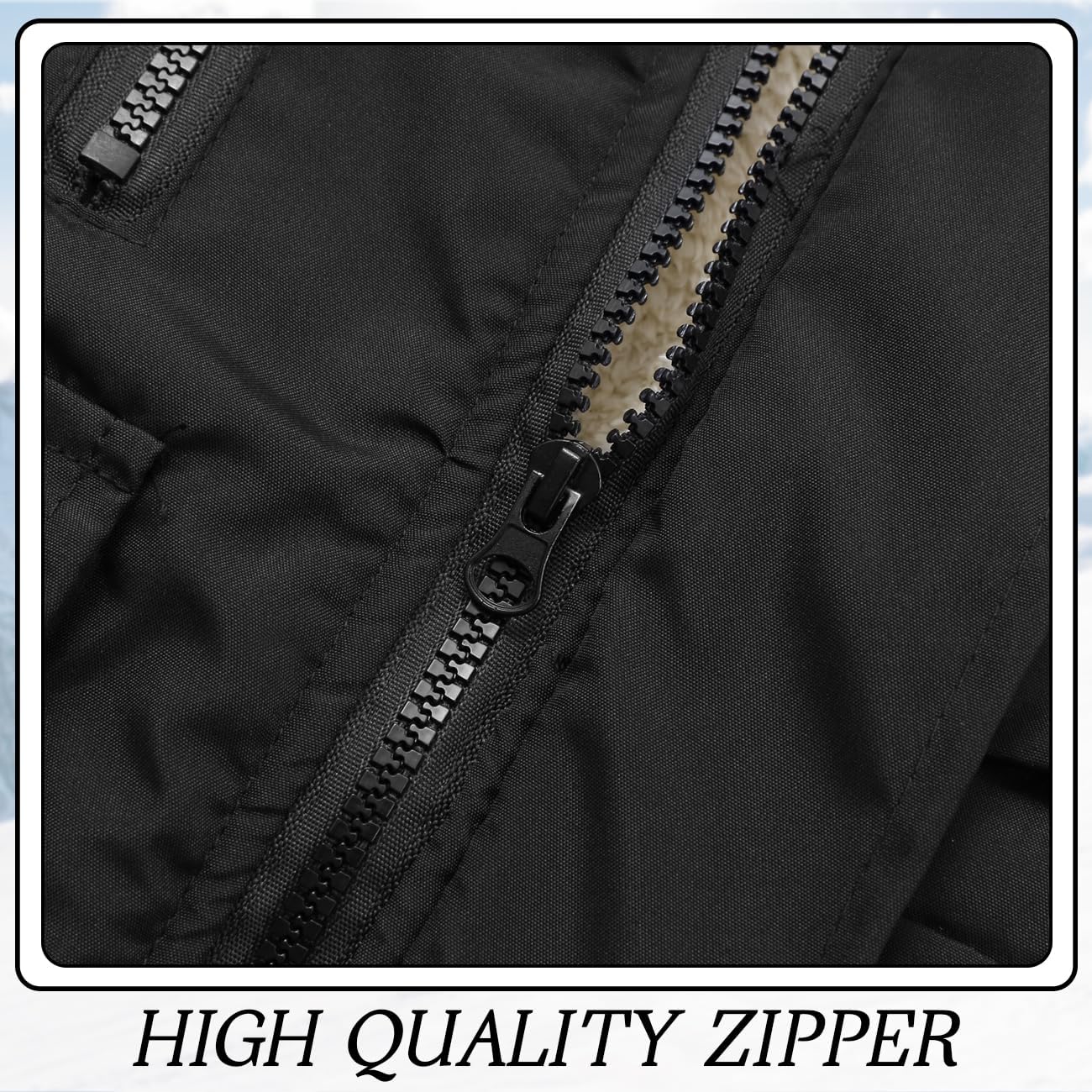 Winter Kids Boys Snow Coats Black Puffer Jacket Hooded Clothes Fleece-Lined Wear