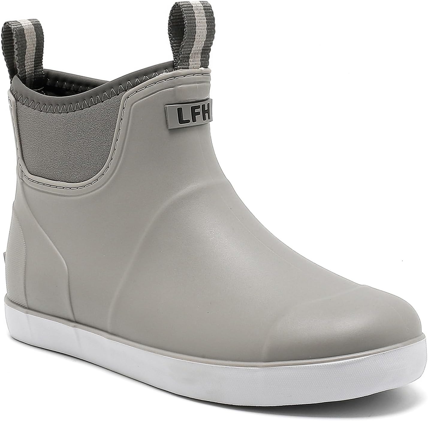 Mens Deck Boots, Saltwater Fishing Booties Rubber Waterproof Ankle Rain Boots, High-performance Footwear Chelsea Boots for Gardening Fishing Boating Camping Sailing
