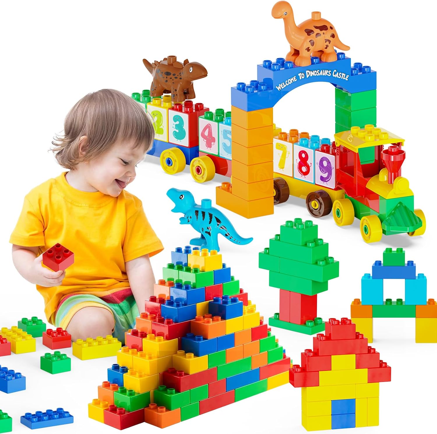 Building Blocks for Toddlers 2-5 Including Dinosaurs Cars, 116-piece Large Classic Building Bricks Set, Educational Toys for Children Boys Girls All Ages, Compatible with All Major Brands