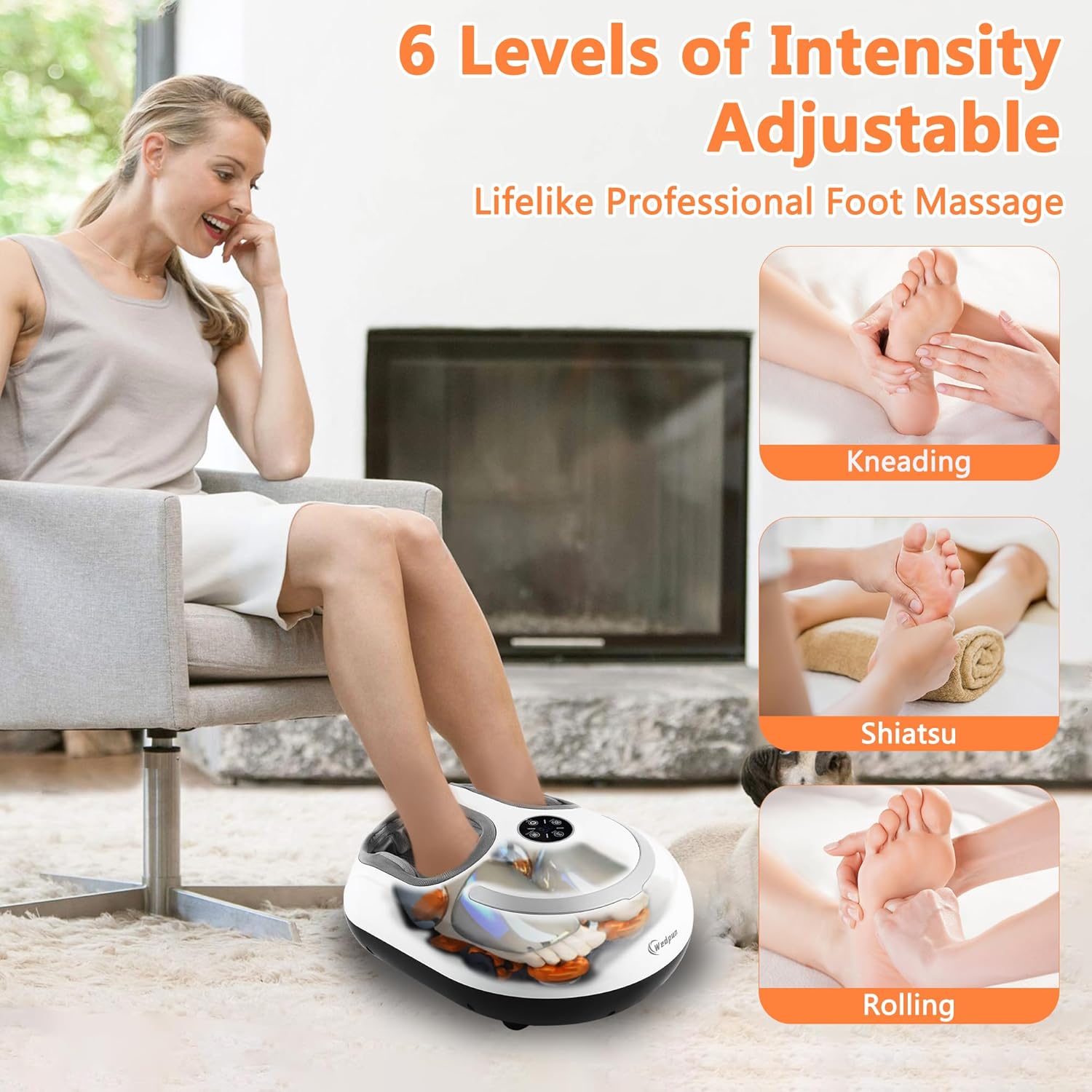 Foot Massager with Heat Shiatsu Foot Massager with Remote Deep Relief for Tired Muscles Electric Feet Massage Machine for Home and Office Gifts for Mom Dad White