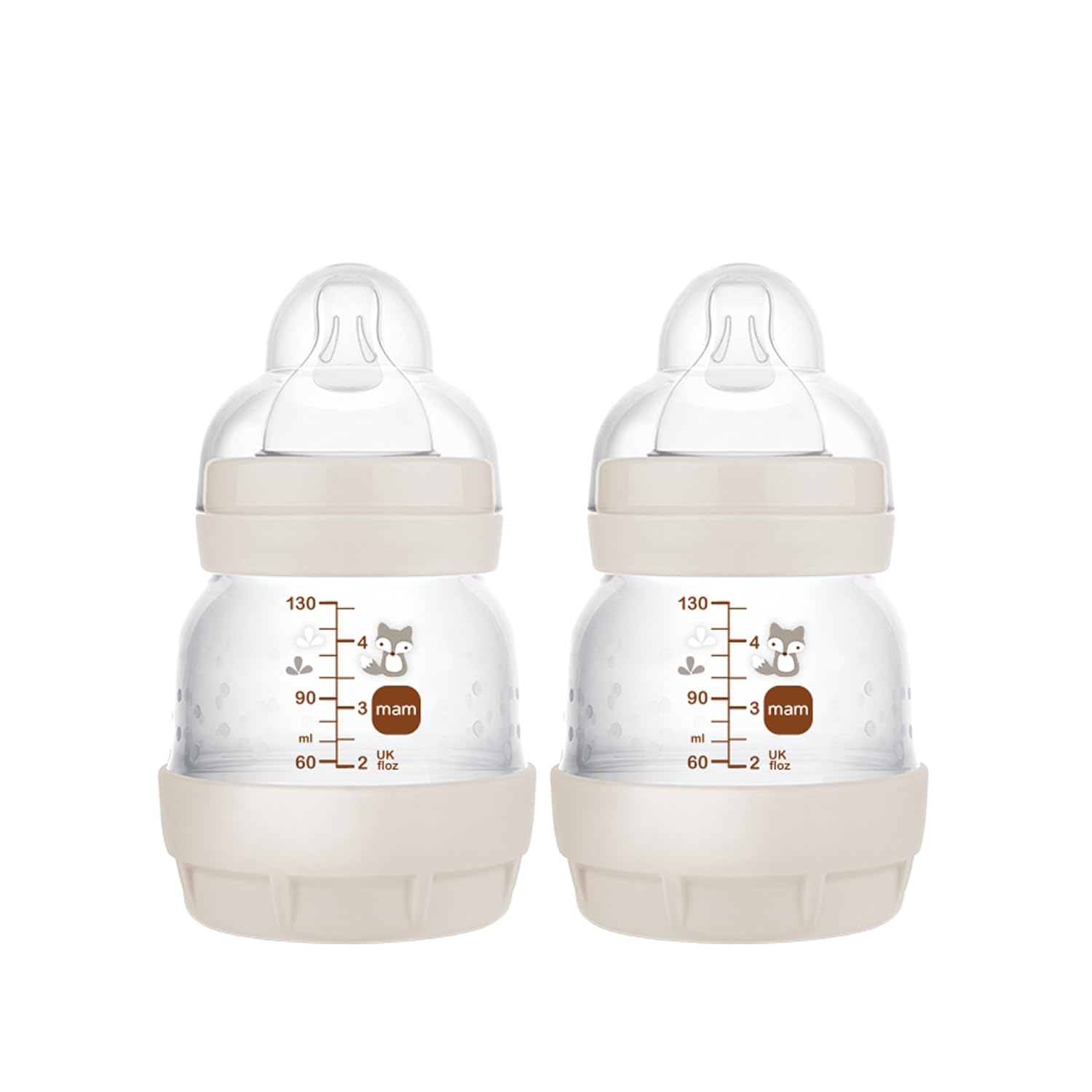 The MAM Easy Start Anti-Colic 5oz Baby Bottle is the ultimate solution for newborn bottles and baby bottles 0-3 months, designed to support smooth transitions between breastfeeding and baby bottle feeding. These baby bottles for newborn babies feature an extra slow-flow, SkinSoft™ silicone nipple that closely mimics the natural feel of breastfeeding, making them ideal for breastfeeding babies. With a high acceptance rate, MAM baby bottles are trusted by parents worldwide to help reduce nipple confusion and encourage consistent feeding routines. Each bottle includes a patented vented base that helps regulate milk flow and reduce air intake, clinically proven to reduce colic symptoms in 80%* of babies, making them top-rated anti colic baby bottles. This innovative base design minimizes gas, reflux, and fussiness—delivering a more comfortable feeding experience for both baby and parent. MAM baby bottles are made from BPS and BPA-free materials, ensuring a gentle feeding experience from the very first day, whether you’re using baby bottles newborn or transitioning to baby bottles 6 months plus. Parents love the built-in self-sterilizing feature: simply add 20ml of water, assemble the bottle, and microwave for 3 minutes—no separate sterilizer needed. Plus, these dishwasher-friendly bottles have a removable base and wide openings for effortless cleaning, saving you time during those busy newborn baby bottles days. Thoughtfully crafted with bio-circular materials and sustainable packaging, MAM baby bottle-feeding supplies are a smart, eco-conscious choice for modern families. They make the perfect registry add-on or baby shower gift for new parents seeking reliable, self-sterilizing bottles that prioritize comfort, innovation, and sustainability. *Market research 2009-2023, tested with 1,808 babies.