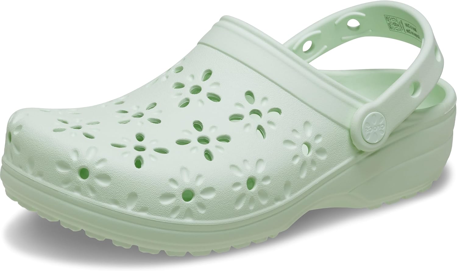 It's the iconic clog that started a comfort revolution around the world, now in a fun new range of floral prints! Channel your flower power anytime with these gorgeous floral graphics. Crocs Classic Clogs offer lightweight Iconic Crocs Comfort, a print for every personality, and an ongoing invitation to be comfortable in your own shoes. Find Your Size: We recommend sizing down (e.g. if you are a 7.5, size down to a 7). Ethylene vinyl acetate upper and insole. Unlined. Lightweight and Fun Water Shoes: These Crocs for men and women feature lightweight iconic Crocs comfort. Ventilation ports add breathability and help shed water and debris quickly, making these the perfect water shoes. Designed to Fit: These slip-on shoes are easy to take on and off, while being extremely durable. Plus, these walking shoes for women and men offer pivoting heel straps for a more secure fit. Slip-on style in a round toe silhouette. Ethylene vinyl acetate outsole.