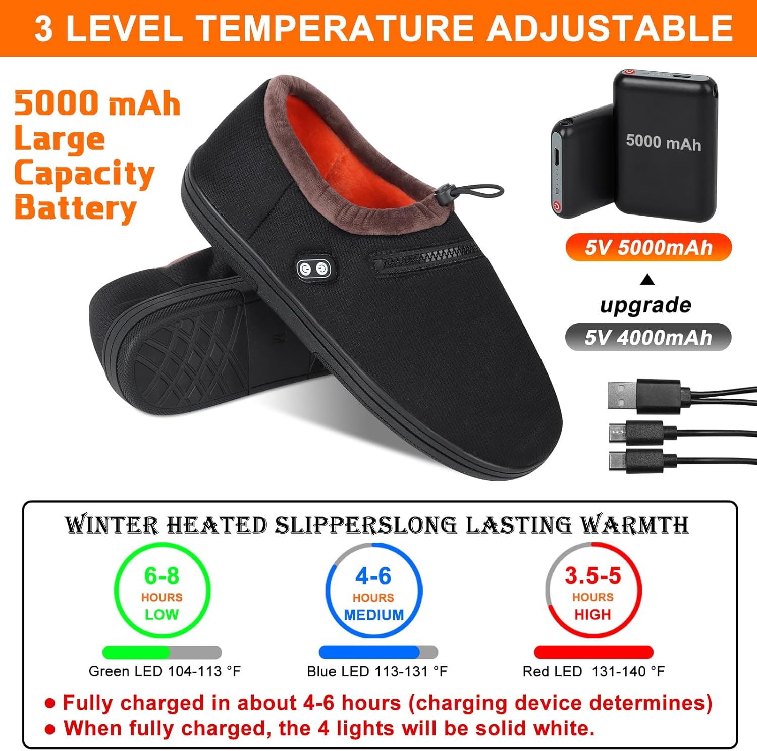 【 Comfort and Safety Combined】The heated house slippers is made of memory foam combined with a soft plush lining, which locks in warmth and effectively relieves foot pressure. The sole of the electric heated slippers is made of rubber with a non-slip texture design, improving grip by 40%, making it easy to handle outdoor walking and ensuring stable steps even on wet or slippery surfaces.