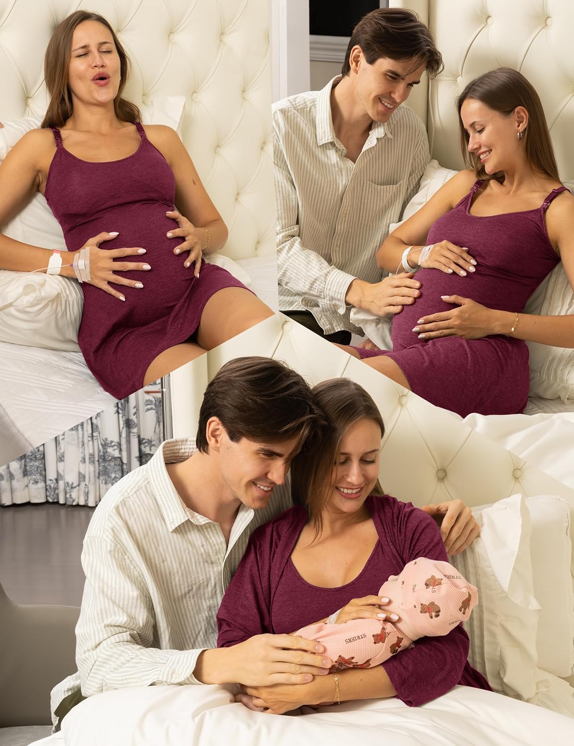 SUNNYBUY Women's Nursing Nightgown Maternity Robe Set, 3 in 1 Labor Delivery Breastfeeding Dress Postpartum Sleepwear