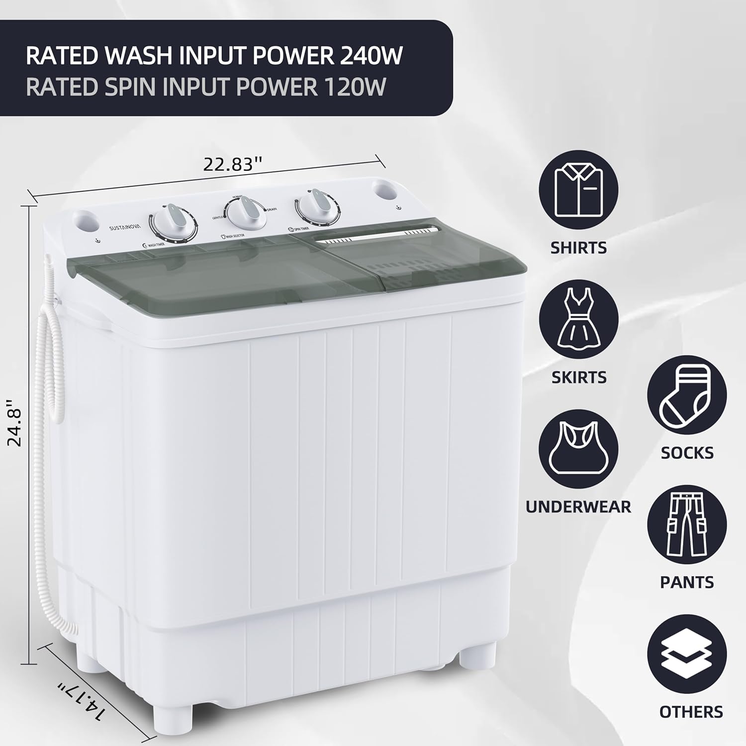 Portable Washing Machine Twin Tub 9.9 Lbs Capacity, (7.7 Lbs) and Spinner(2.2 Lbs) Combo Mini Compact Laundry Washer for Home, Apartment, Camping, RVs and Dorms, Black/White