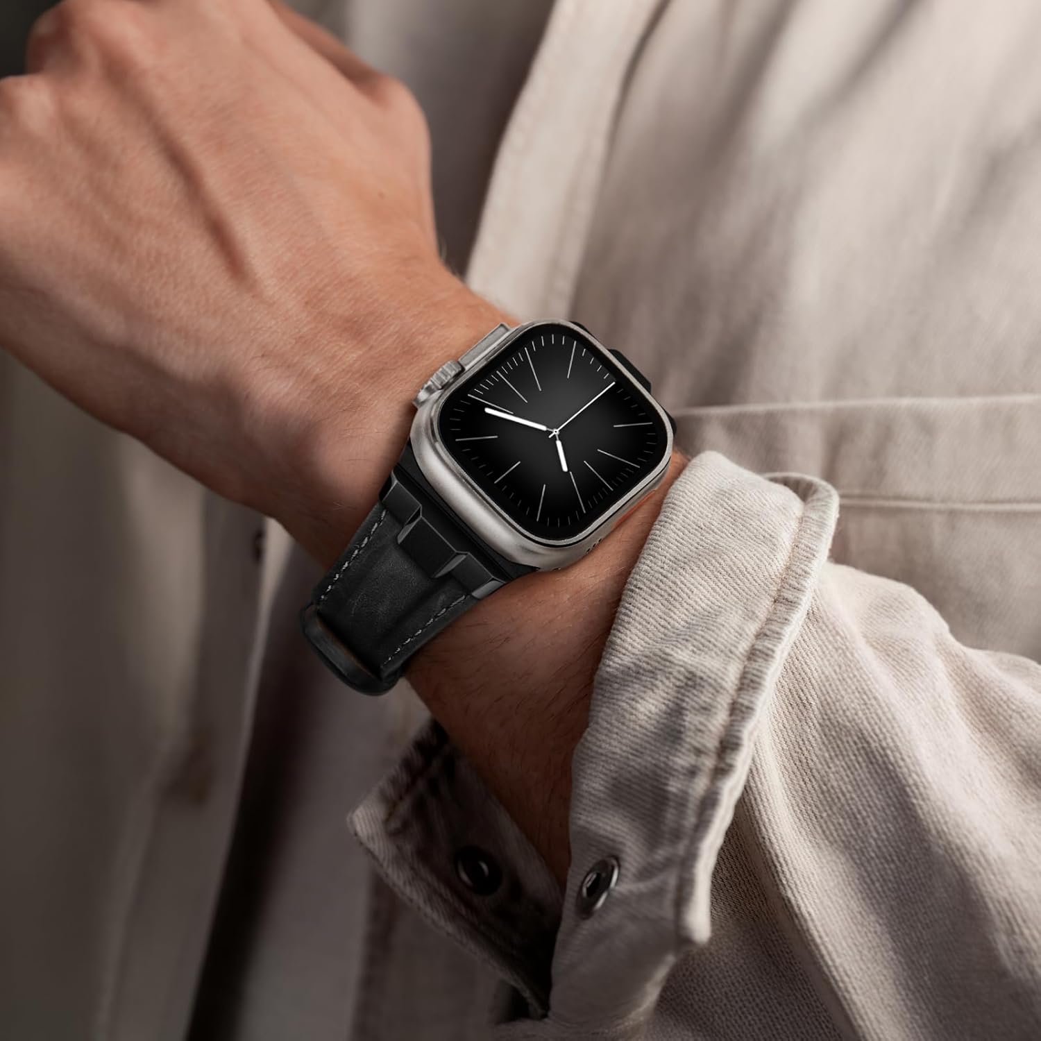 Suitisbest Leather Band Compatible for Apple Watch Ultra Band 49mm 46mm 45mm 44mm 42mm 41mm 40mm, Genuine Leather Replacement Strap for iWatch series 11 10 9 8 7 6 5 4 3 2 1, SE 3 2 1, Ultra 3 2 1