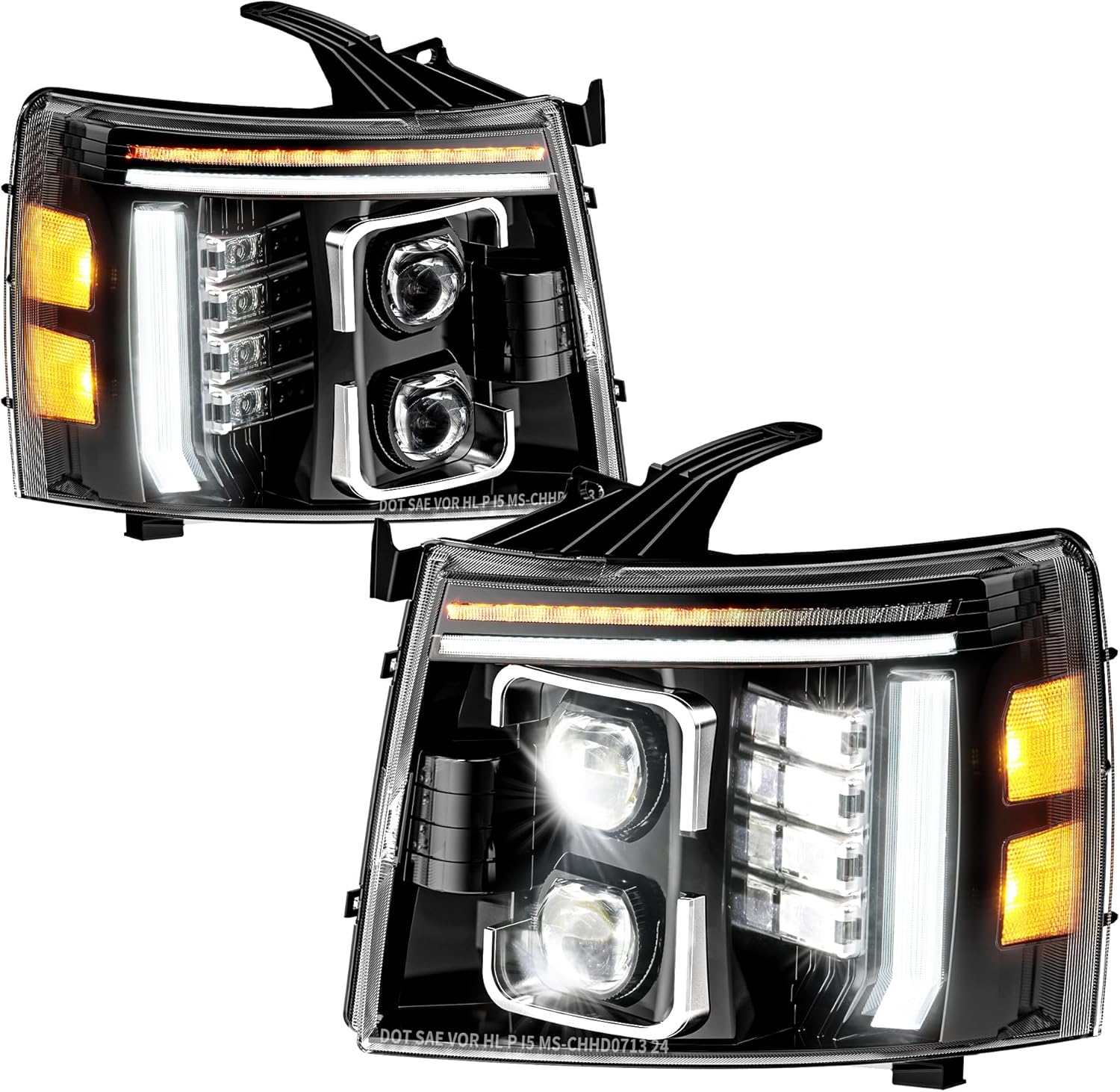 Z-OFFROAD New LED Headlights Assembly Compatible with 2007-2013 Chevy Silverado 1500 2007-2014 Silverado 2500HD 3500 HD, DOT Approved Sequential Turn Signal Hi/Low Sealed Beam Bulb