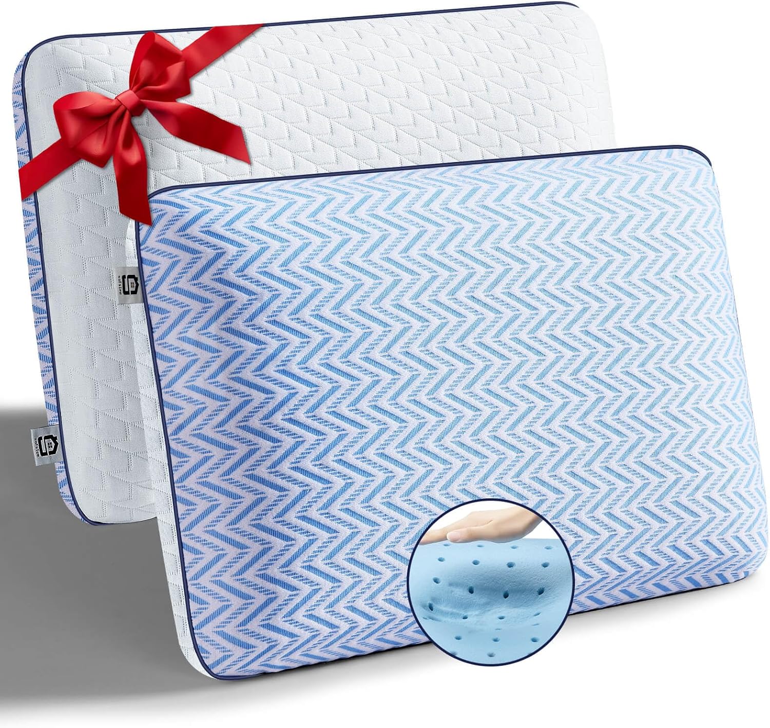 Cooling Gel Memory Foam with CertiPUR-US & OEKO-TEX Certification:Designed for breathability, our high-density gel memory foam pillow features a ventilated structure to promote airflow and dissipate body heat. The slow-rebound foam provides contouring support while keeping you cool all night