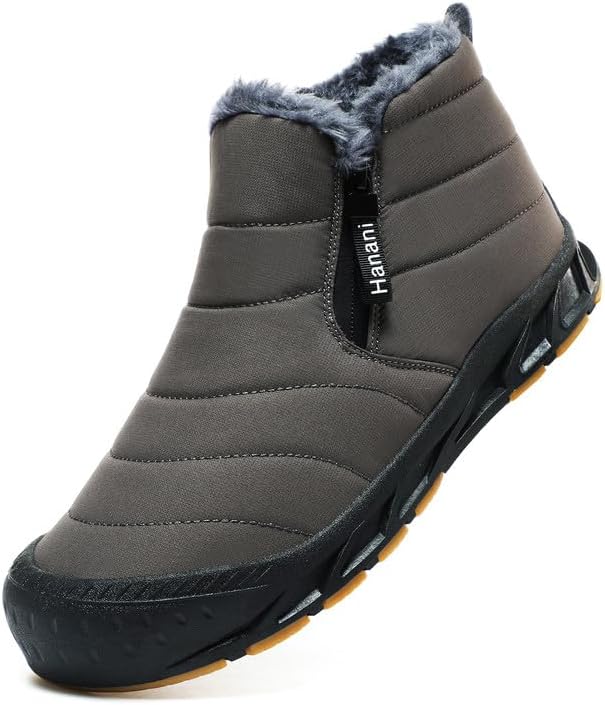Hanani Mens Snow Boots Waterproof Winter Boots for Men Fur Lined Warm Ankle Boots Zipper Closure Slip on Outdoor Boot Comfortable Walking Shoes