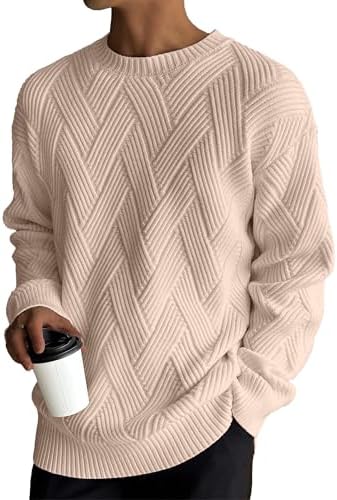 HOTake Men's Crewneck Sweaters Casual Textured Pullover Sweaters with Diagonal Jacquard Pattern
