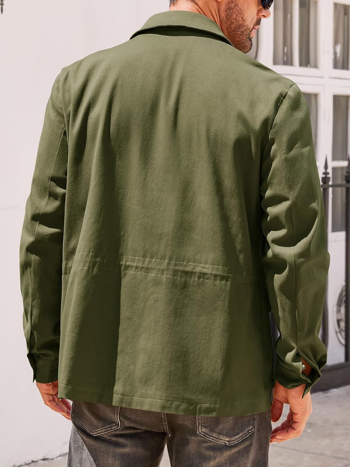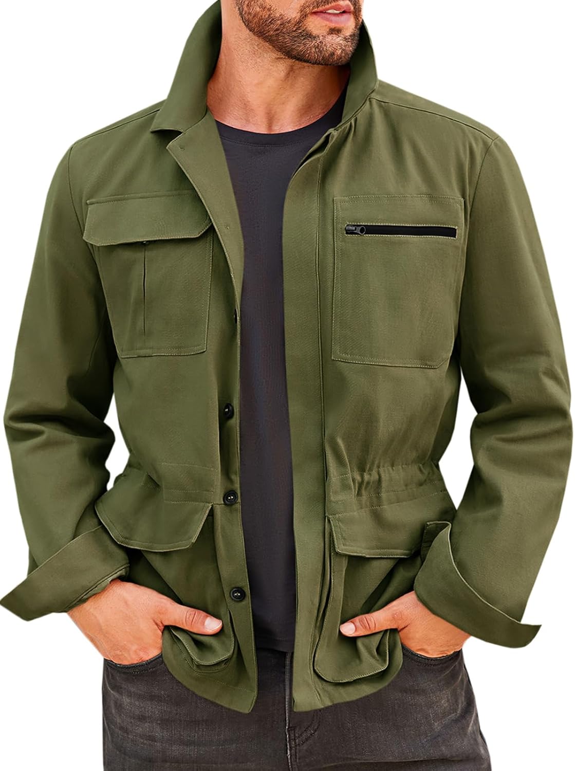 Runcati Mens Safari Jacket Military Casual Lightweight Jacket Windproof Multi Pocket Outdoor Fishing Coat
