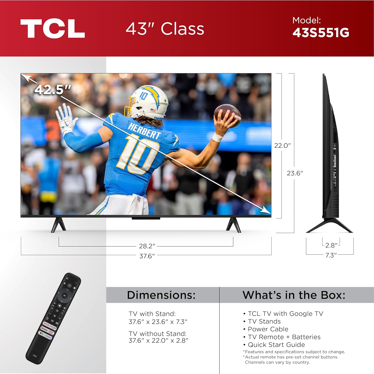 Más información para tu compra de TCL 43S551G 43 inch S5 S-Cl...