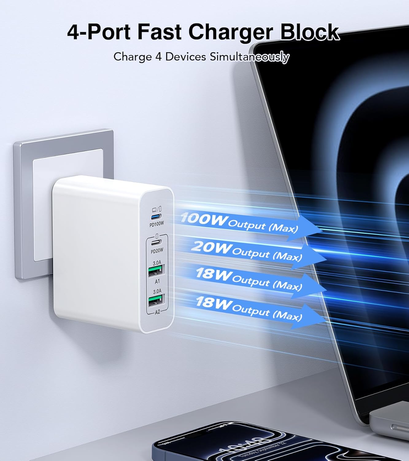 USB C Wall Charger Block, 140W GaN 4-Port Fast Charger Charging Station Hub,100W Laptop Adapter for MacBook Pro/Air, iPad Pro, Galaxy S23, Dell XPS 13, Note 20/10+, iPhone 17/Pro, Steam Deck, and More