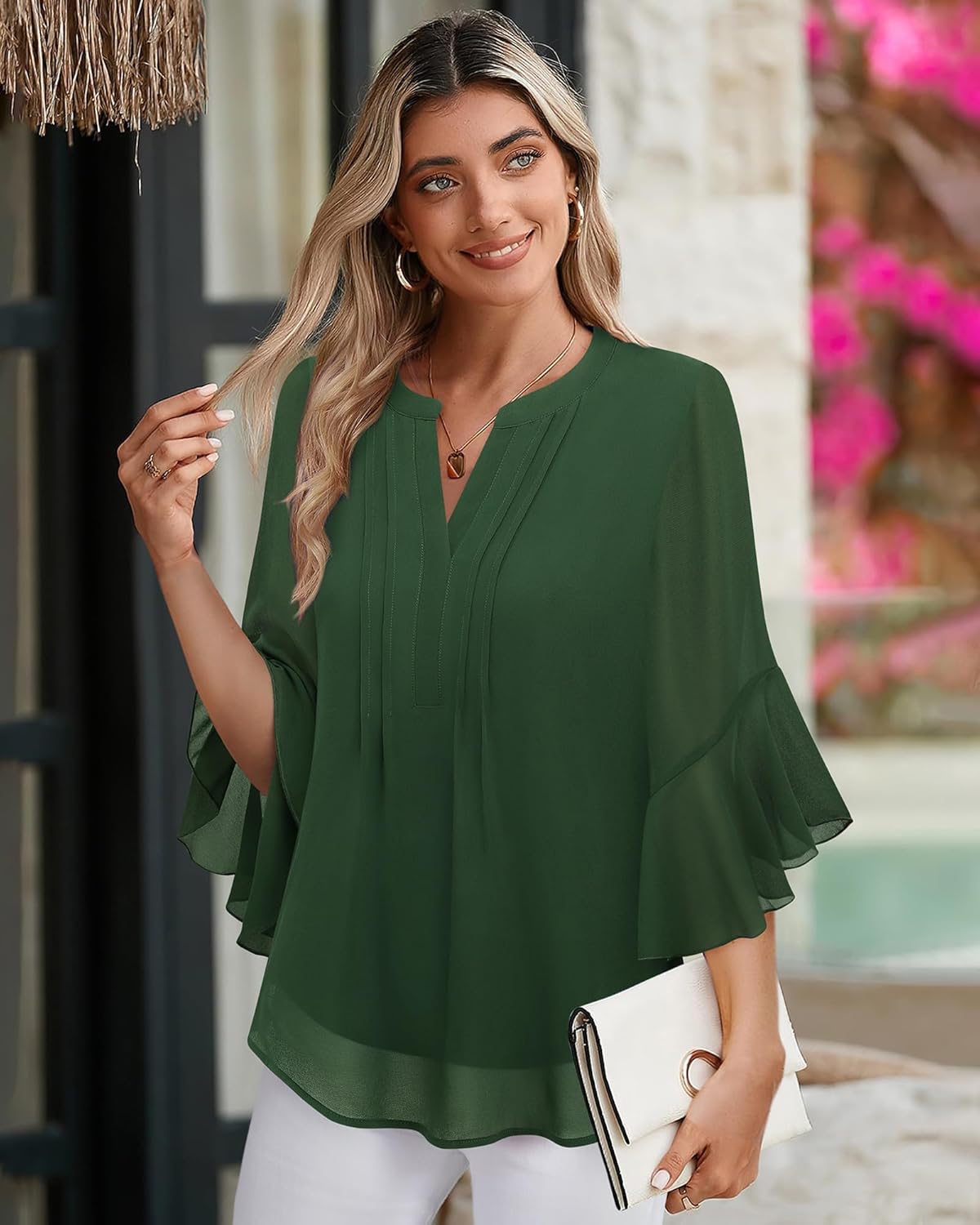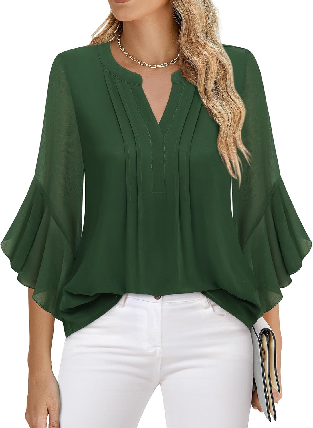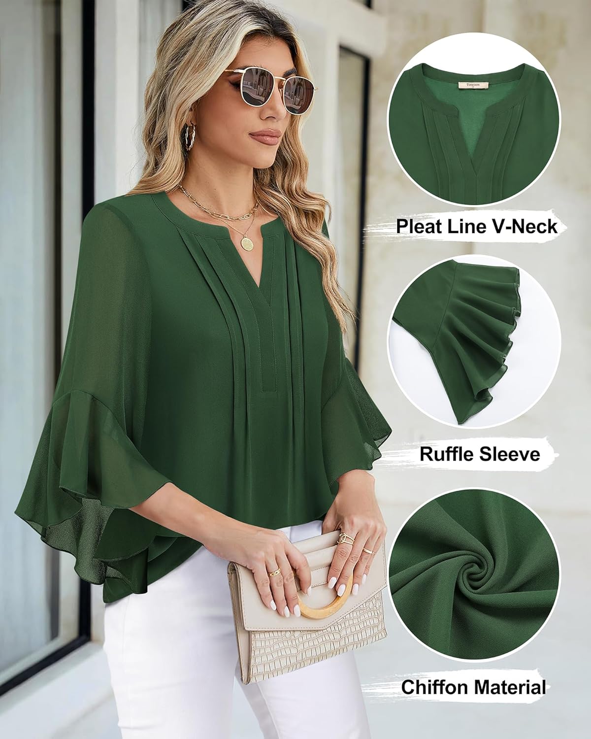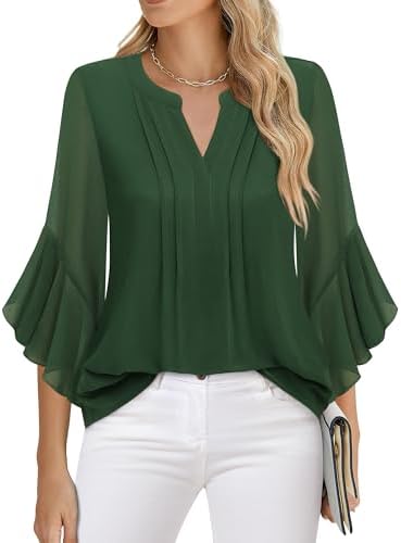 Timeson Women's 3/4 Sleeve Tops Dressy Casual Business Work Blouses Chiffon Shirts
