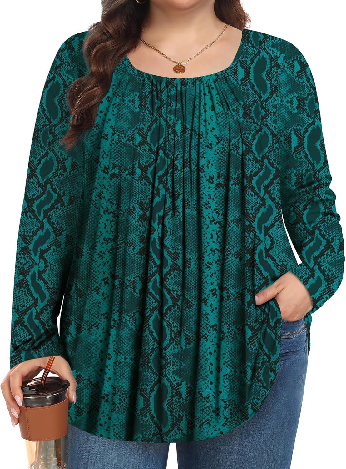 Plus Size Tops for Women Fall Long Sleeve Shirts Blouses Flowy Loose Fit 1X-5X