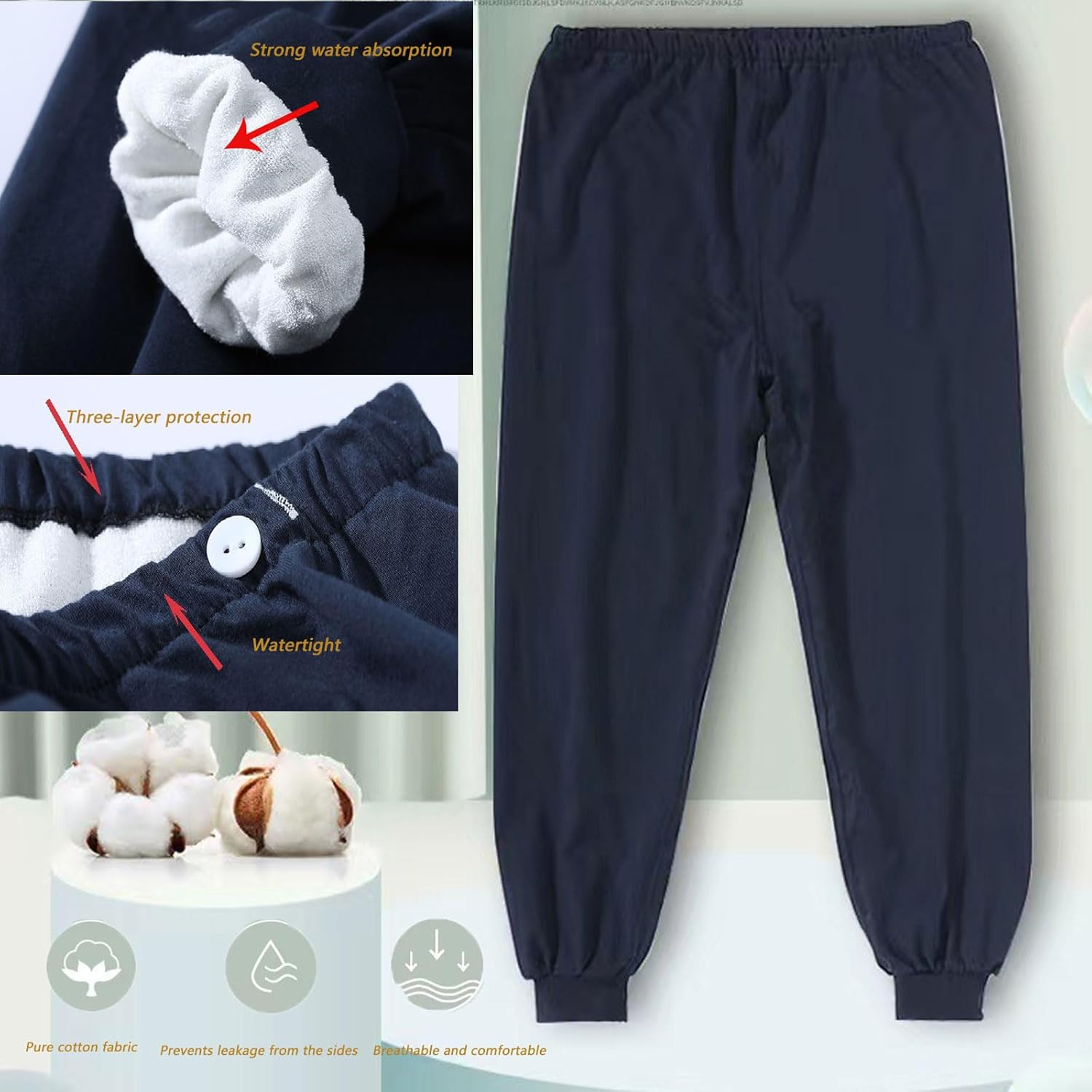 High-Quality Material: incontinence pants are made with a 3-layer construction for ultimate comfort and protection. The outer layer is crafted from cotton material, while the middle layer features a TPU waterproof fabric.This innovative design provides excellent breathability, softness, and exceptional absorption, ensuring maximum leak protection.