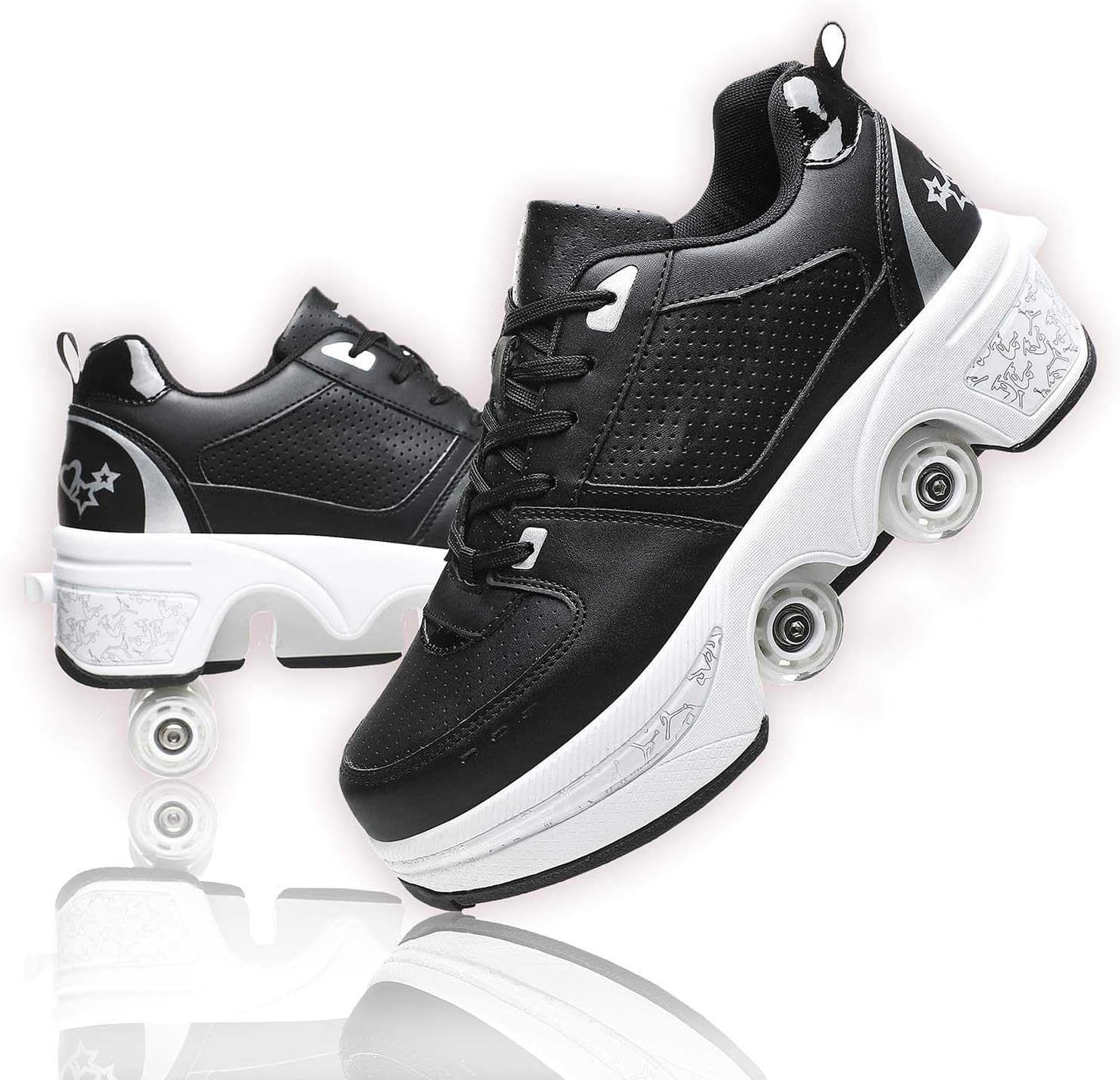 Roller Skate Shoes for Men, Double-Row Deform Wheel Automatic Walking Shoes, Retractable Roller Skate, Shoes with Wheels, Skating Shoes for Outdoor Fun & Fitness