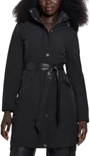 GUESS Women's Softshell Hoodie Belt Parka