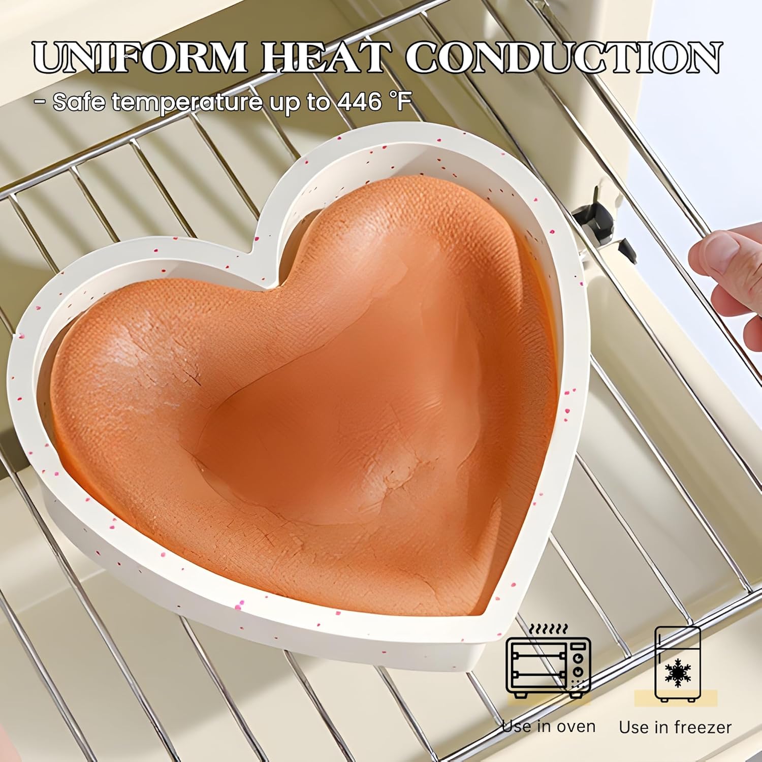 Nonstick Heart Cake Pans Set: With premium nonstick surface, our heart shaped cake pans are easy to demold, ensures your cute heart shaded cakes come out perfectly without sticking to the pan or breaking apart, very easy to use and beginner friendly